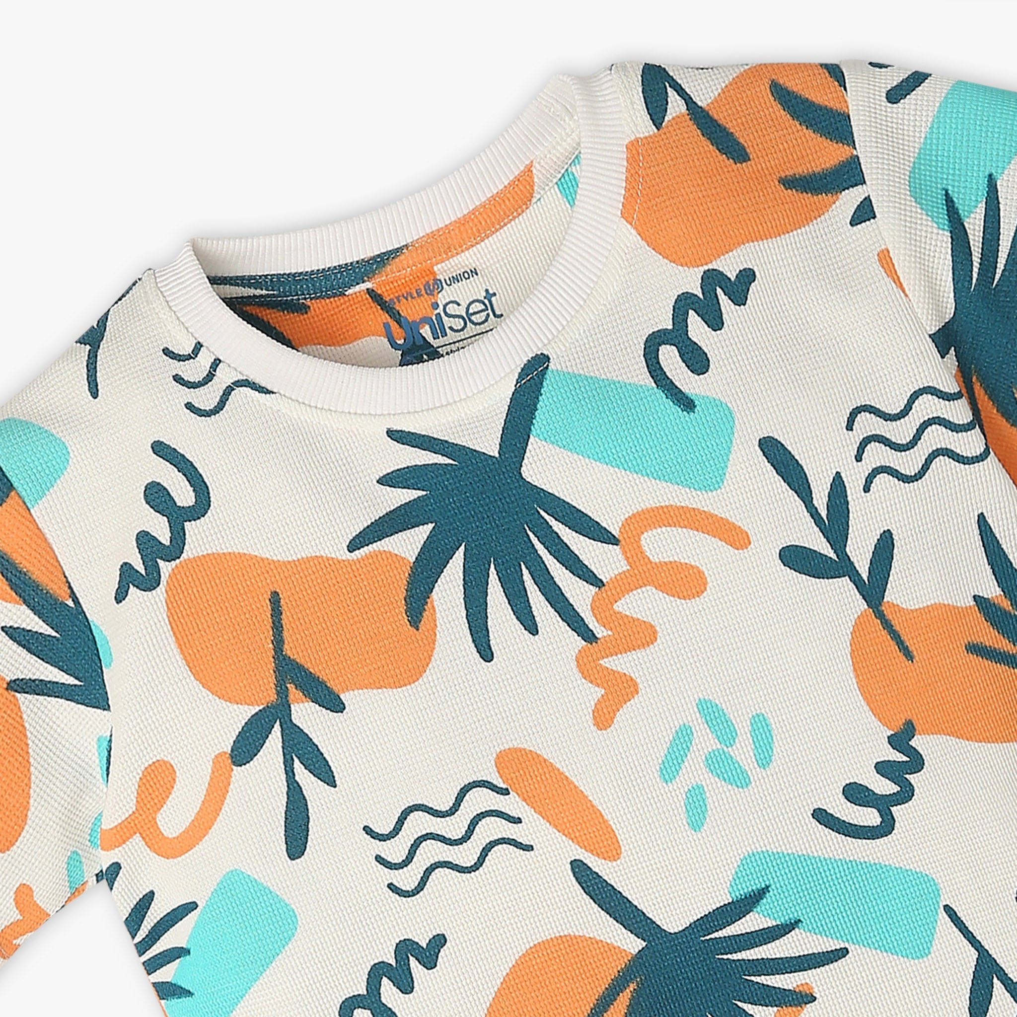 Make a statement with the Boys All Over Print Crew Neck T-Shirt—a perfect blend of style and comfort. Crafted from a soft cotton-polyester blend, this tee is lightweight, breathable, and ideal for everyday wear. The all-over print (AOP) adds a fun and trendy touch, making it a must-have in your little one’s wardrobe.