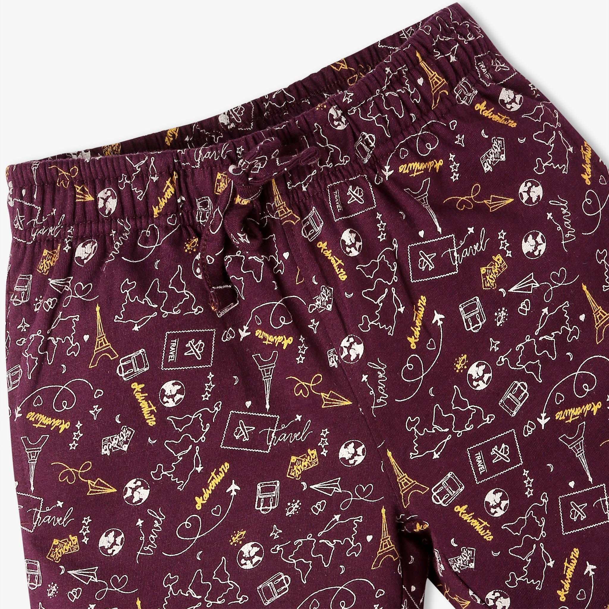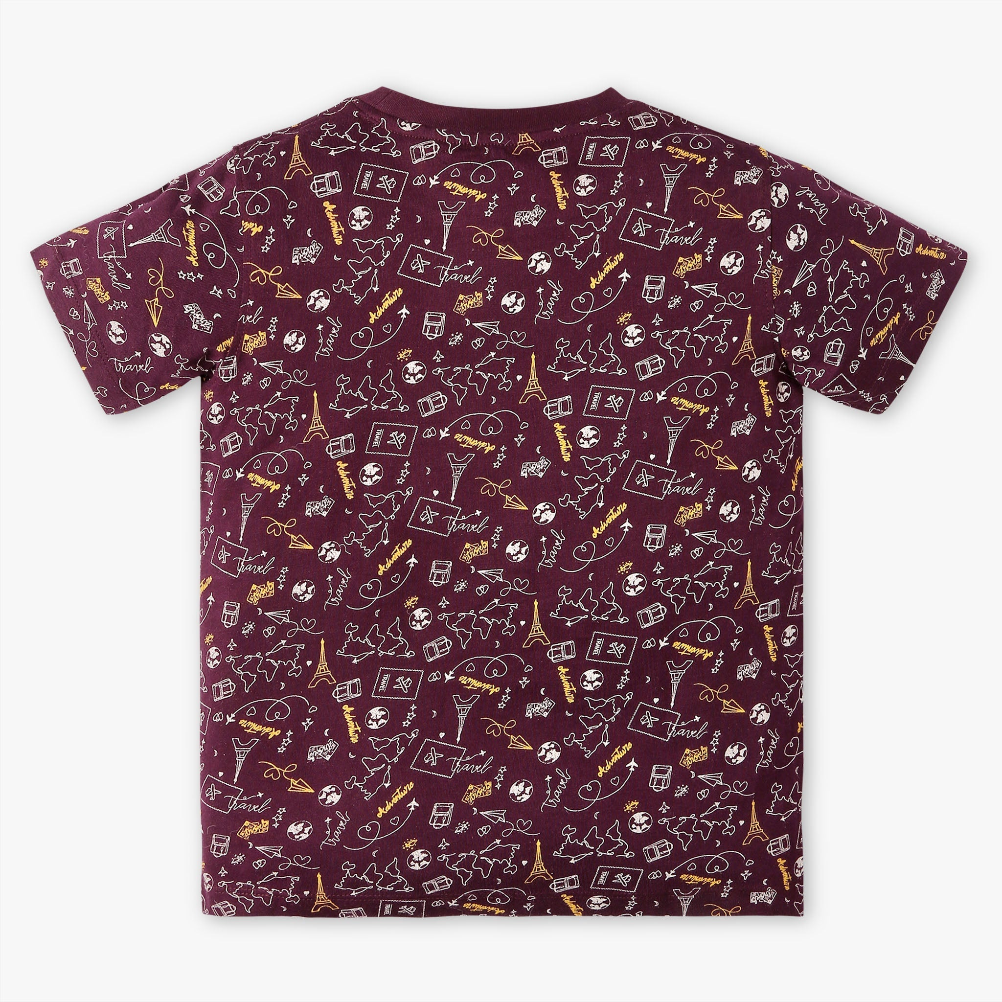 Boys All Over Print Full Length Crew Neck Half Sleeve T-Shirt With Short Sleepwear Set