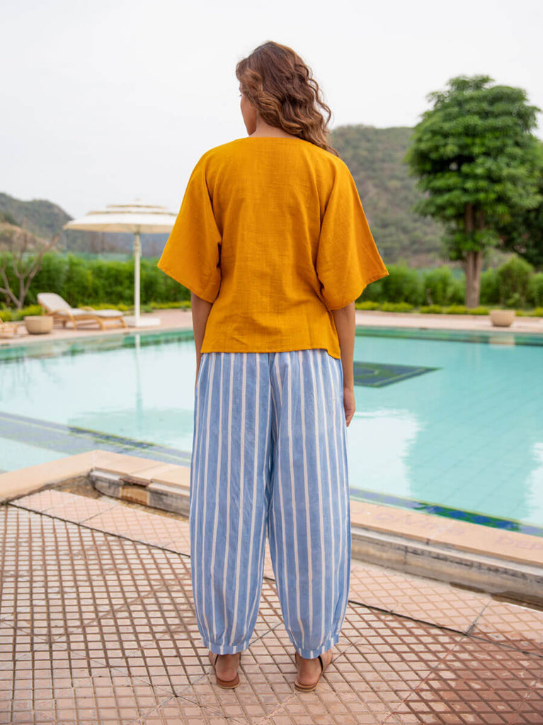 Set of 2 - Mustard Cotton Slub Short Top & Lantern Pants Set