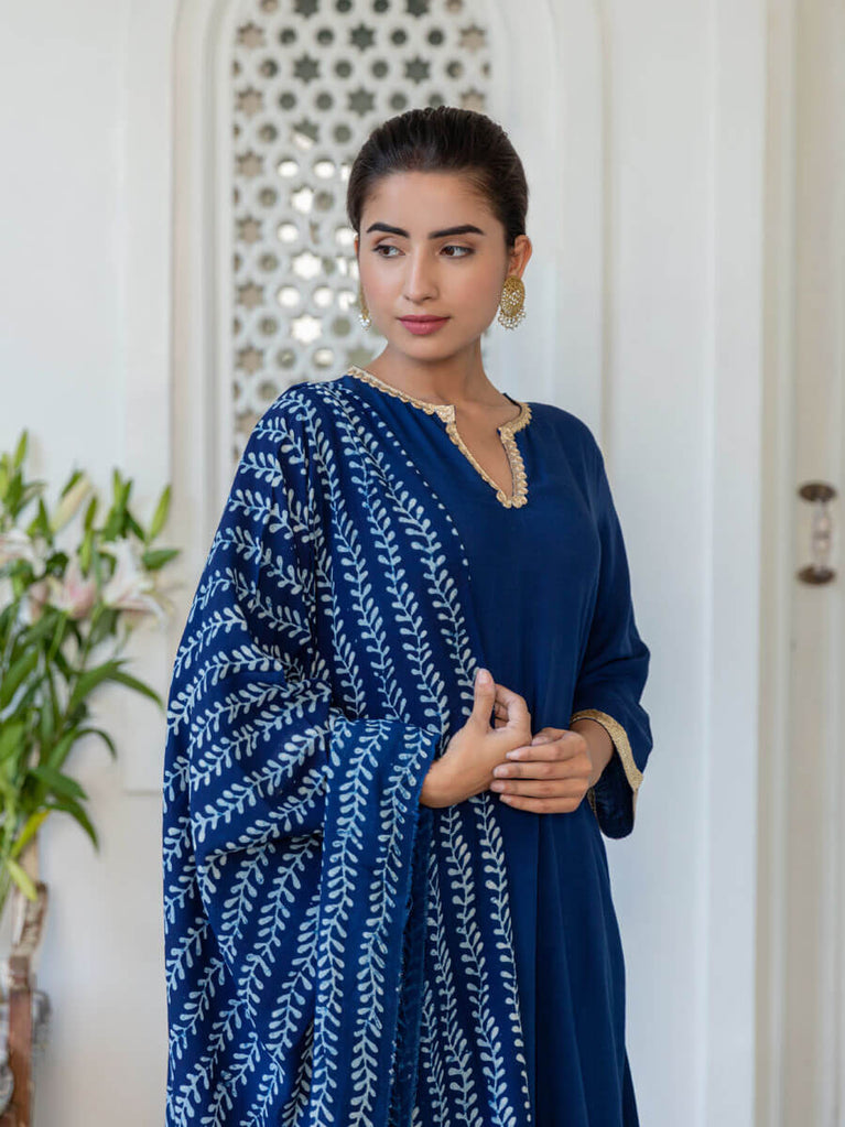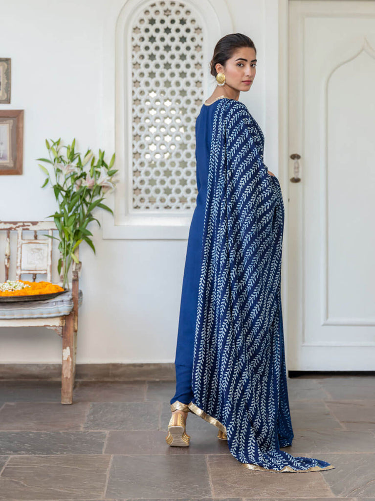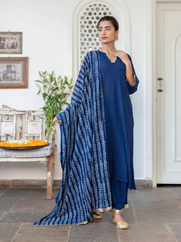 Sanaa Indigo Block Printed Modal Silk Dupatta
