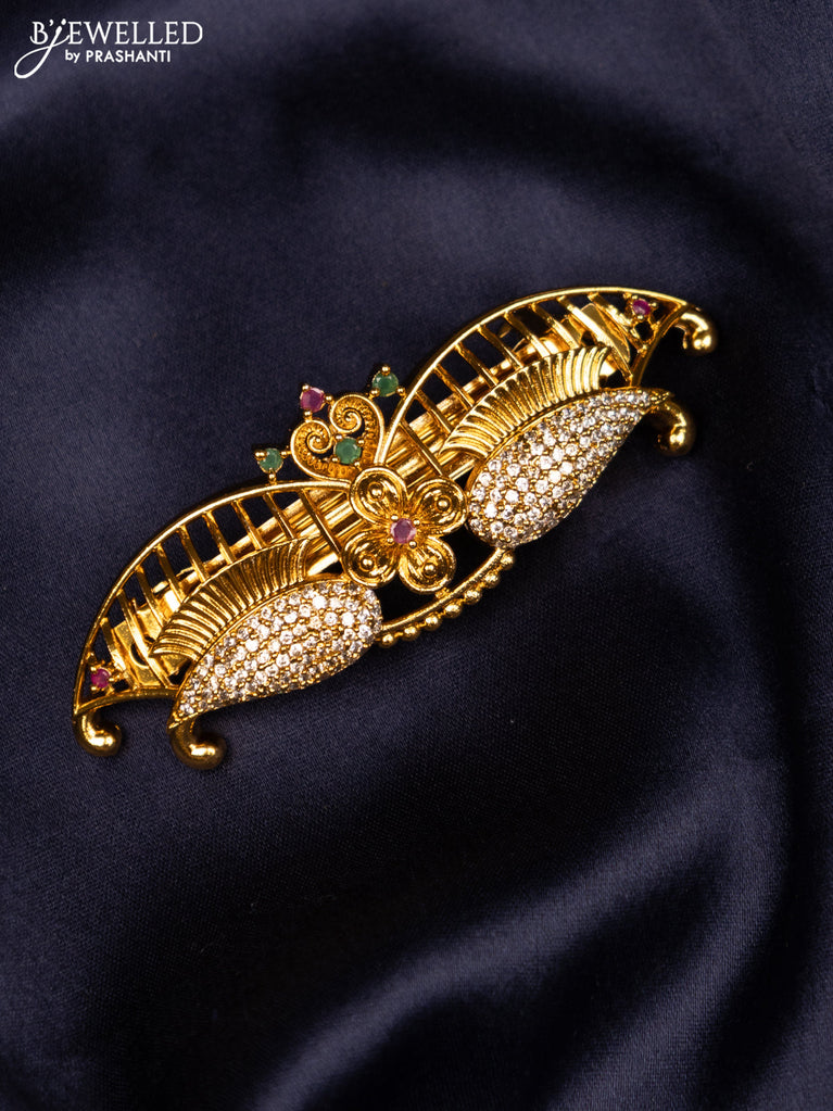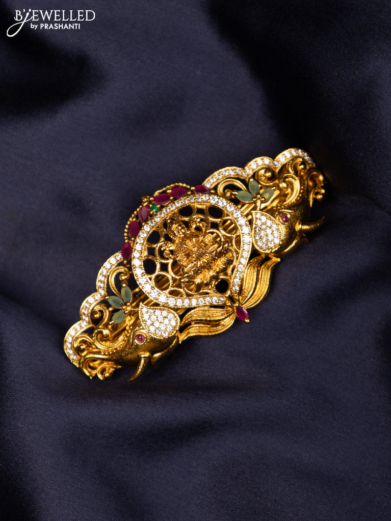 Antique hair clip medium size lakshmi design with kemp and cz stones