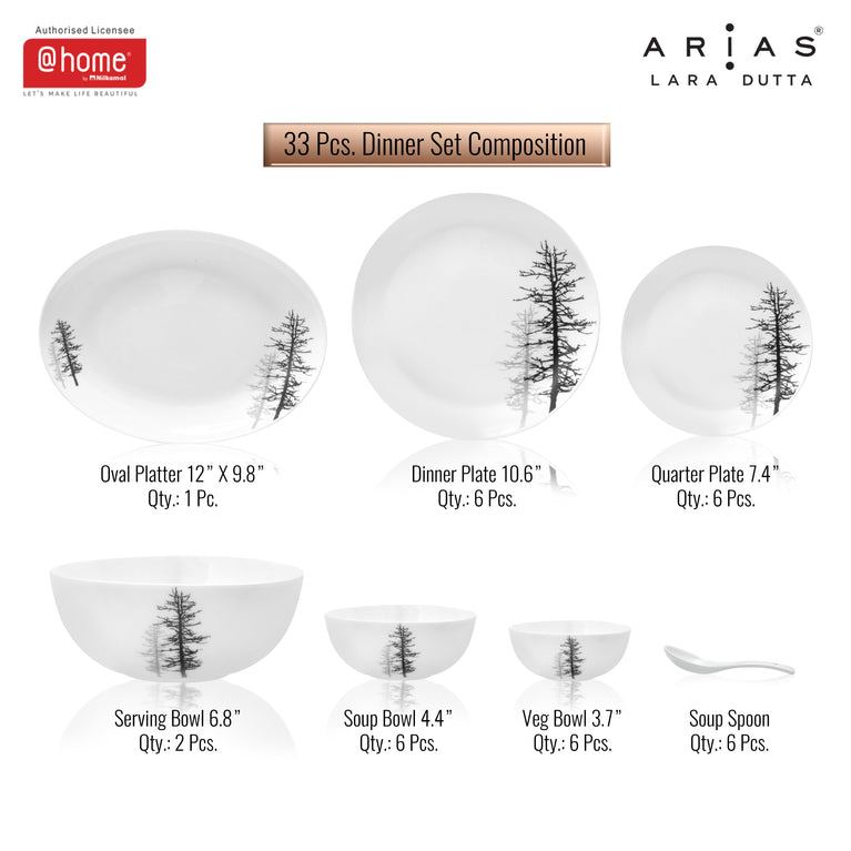 Arias by Lara Dutta Moon Winter Forest Dinner Set - 33 Pieces