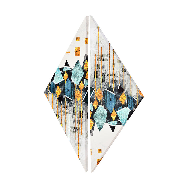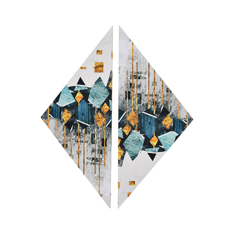 Abstract Wave Paintings Set of 2 (Seagreen & Gold)