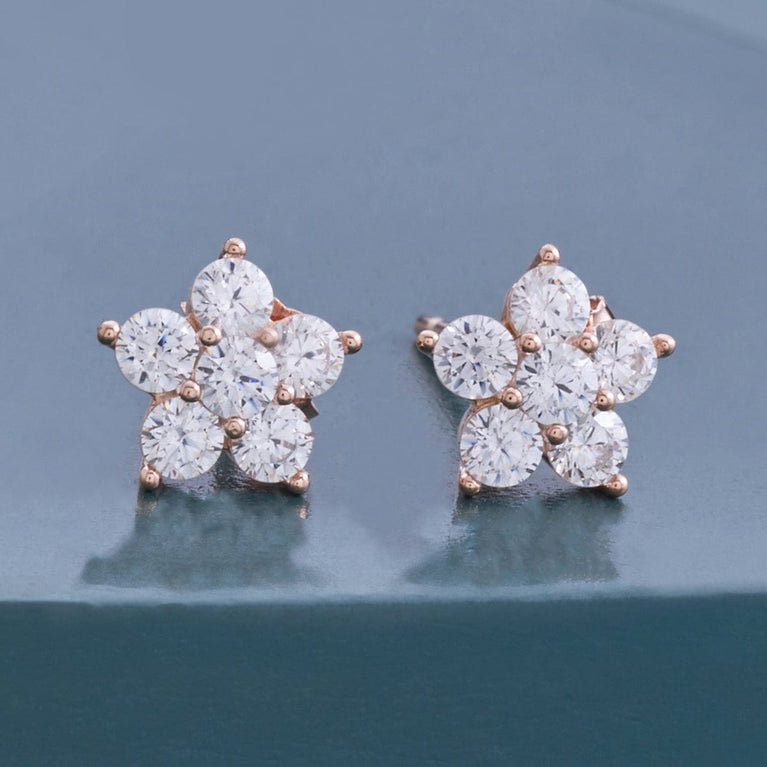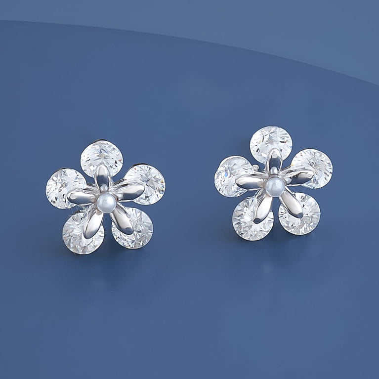Kushal's Fashion Jewellery 92.5 Pure Silver Flower Design EarringOne look at our latest pair of 92.5 silver earrings is enough to make you fall in love with them. Thanks to their heavily studded white zircon look and three polish options, these stud earrings can make all eyes rest on you when you wear them with your favourite outfit.