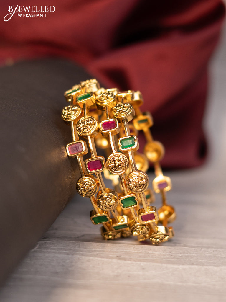 Antique beade haaram lakshmi pendant with kemp stones and pearl & golden beads hanging