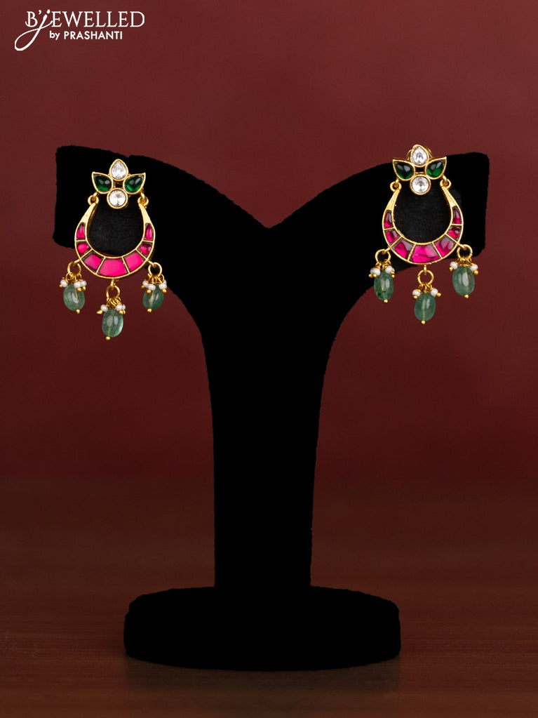 Antique beaded haaram kalinga krishna pendant with pink kemp stones and pearl & green beads hanging