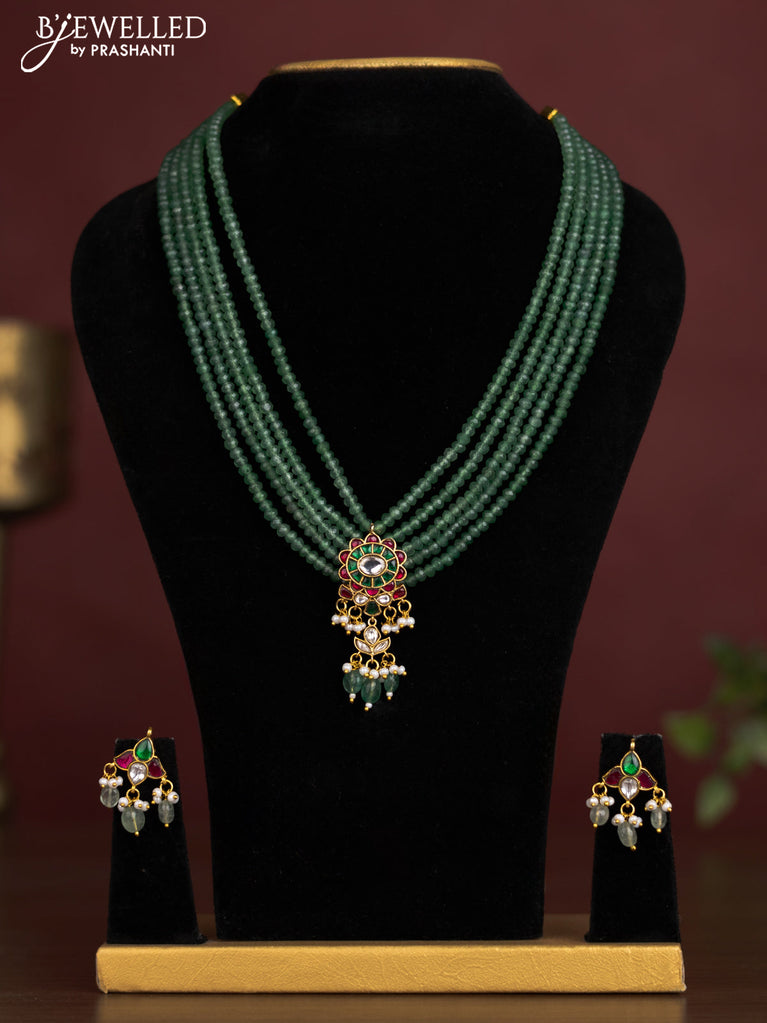 Antique beaded green necklace ram darbar pendant with jadau kundan stones and beads hanging without earrings