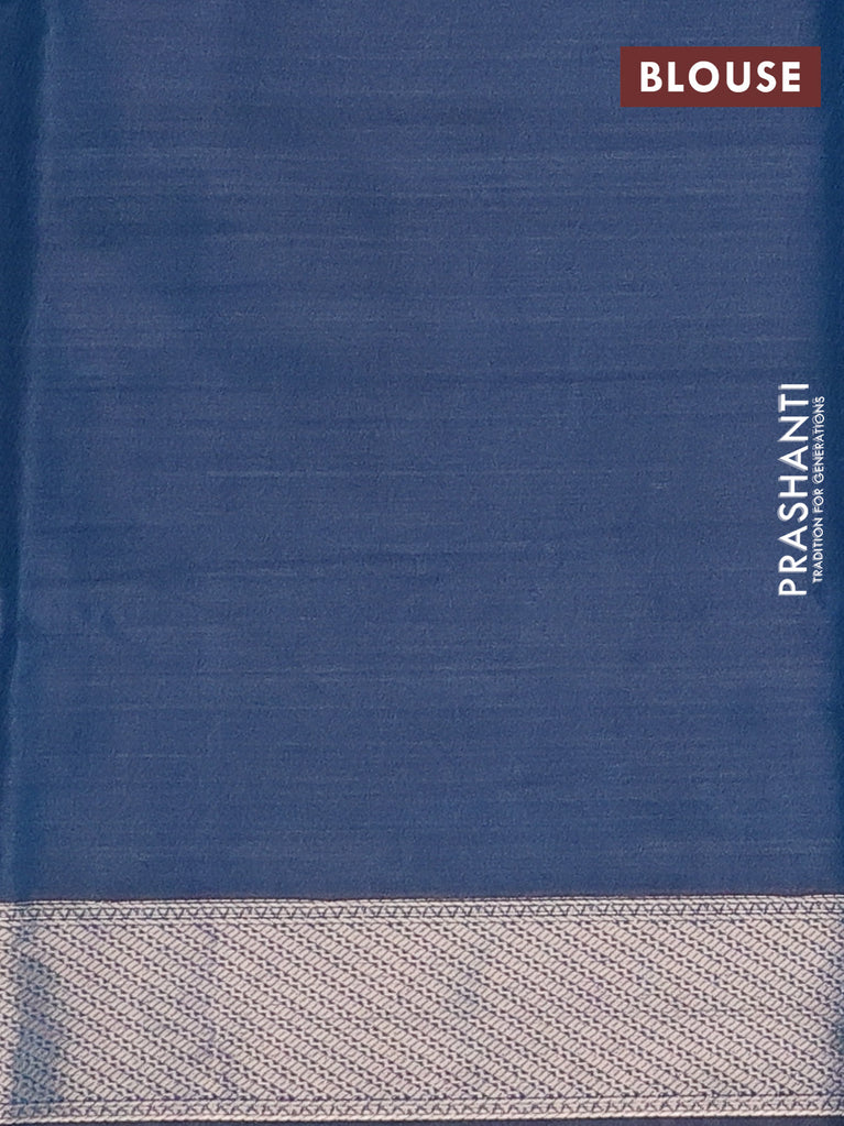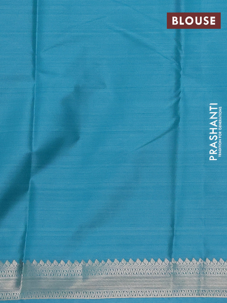 Bangalori semi silk saree teal blue and blue with allover ikat weaves and zari woven border