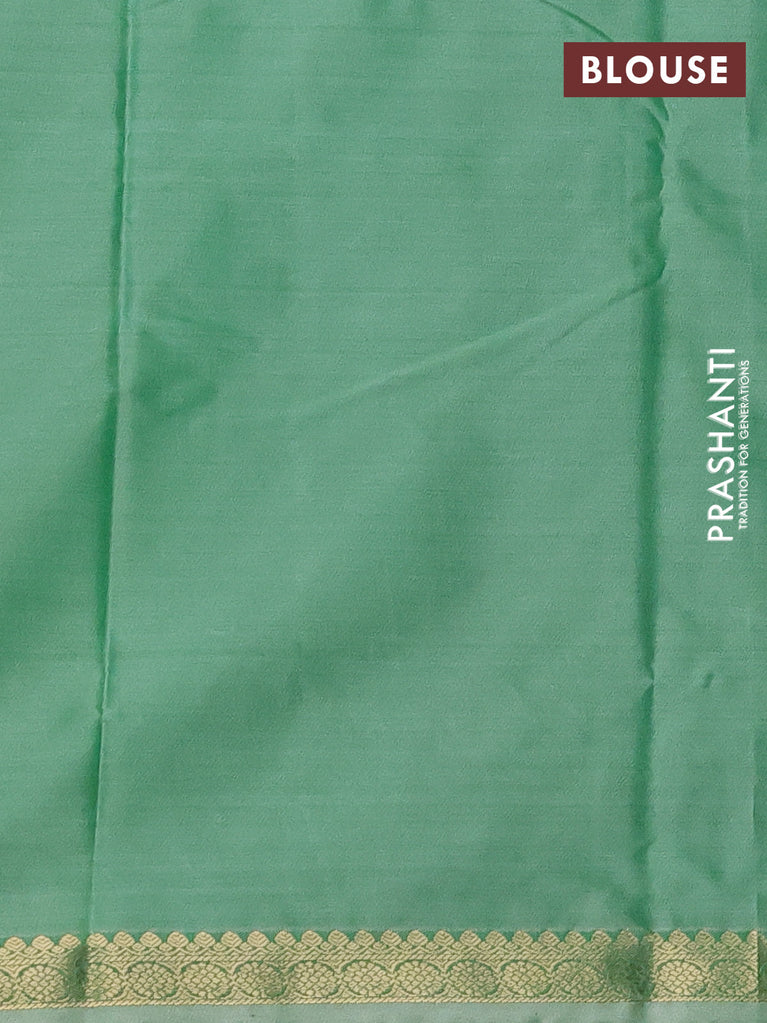 Bangalori semi silk saree teal green shade and green with allover elephant butta ikat weaves and zari woven border
