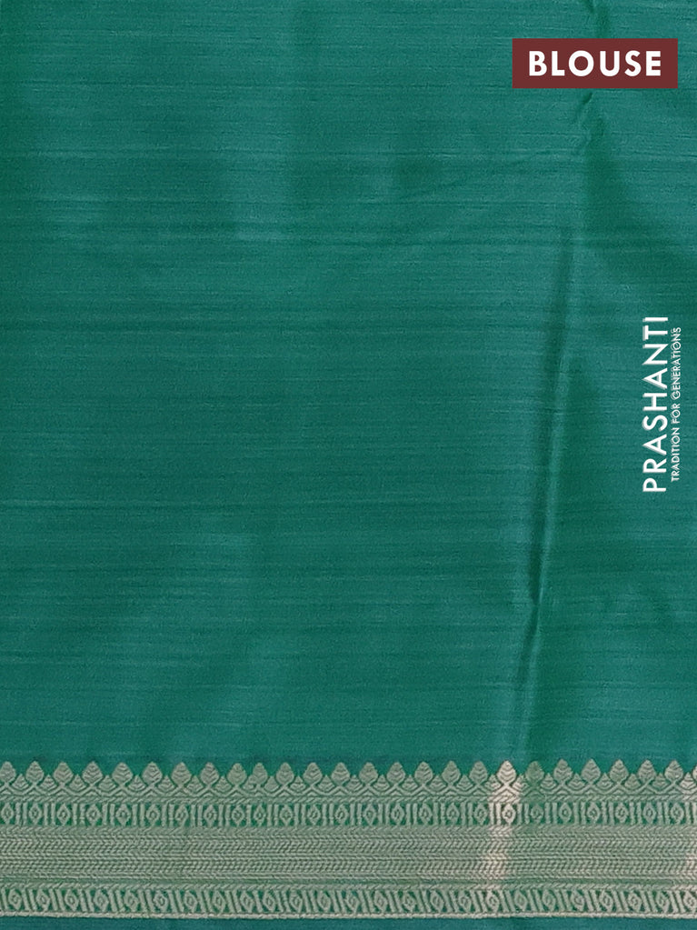 Bangalori semi silk saree teal green with allover elephant butta ikat weaves and zari woven border