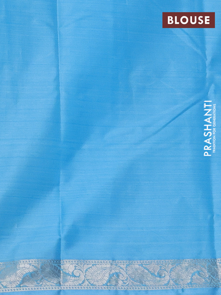 Bangalori semi silk saree teal blue and light blue with allover ikat weaves and zari woven border