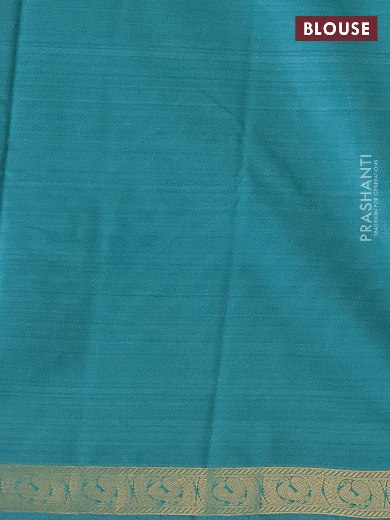 Bangalori semi silk saree teal shade with floral design ikat weaves and zari woven border