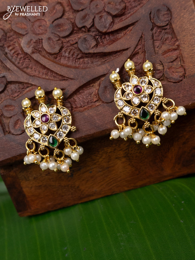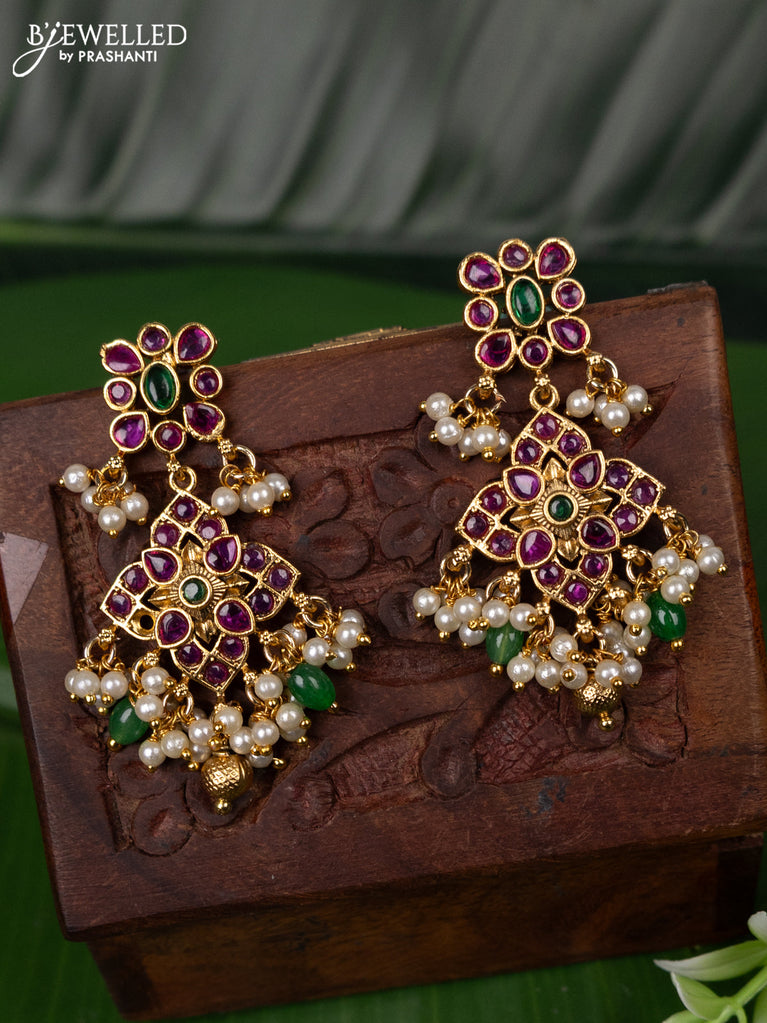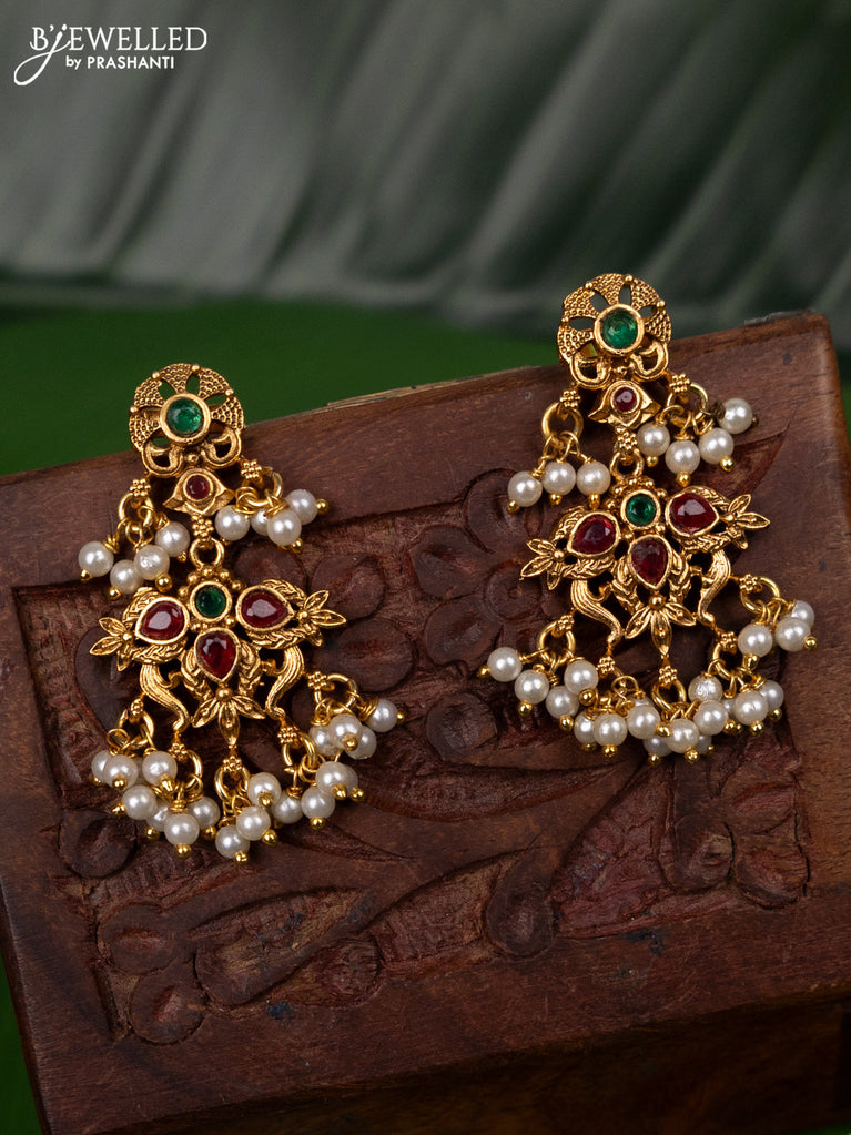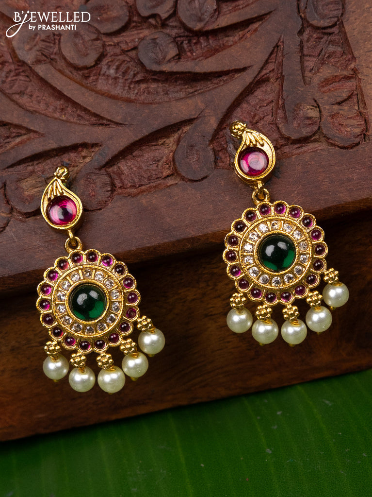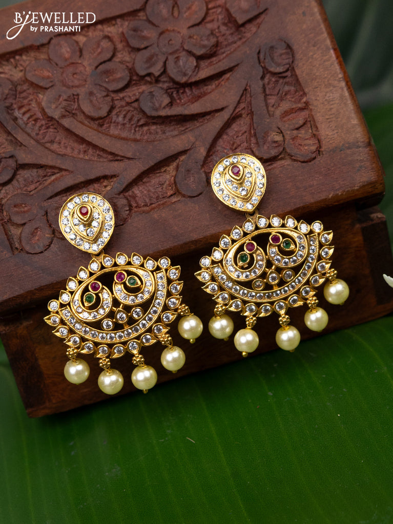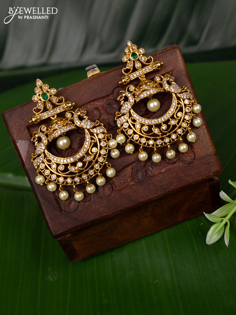 Antique earrings chandbali design with kemp & cz stones and pearl hangings