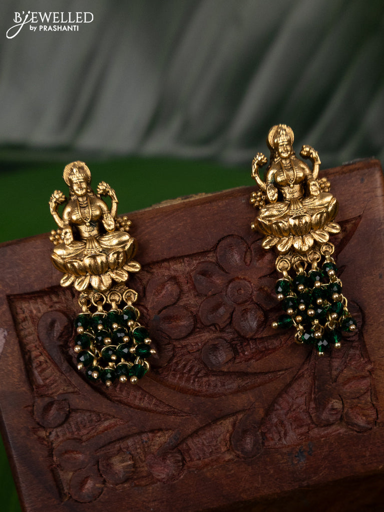 Antique earrings chandbali design with green kemp & cz stones and pearl hangings