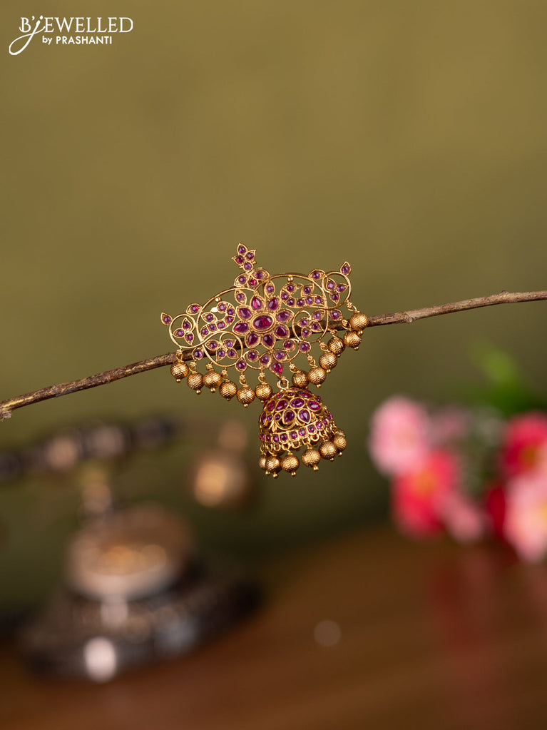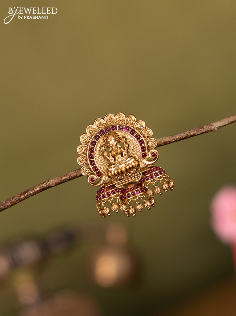 Antique jada billai lakshmi design with pink kemp stones and golden beads hanging