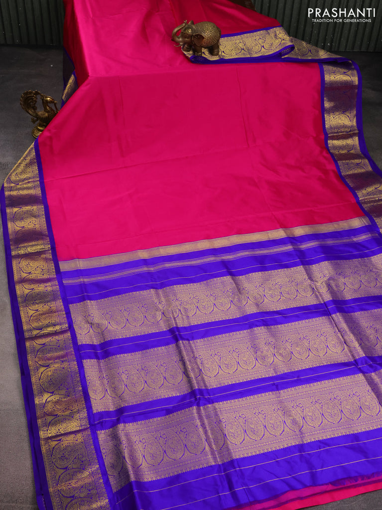 10 Yards silk saree pink and blue with plain body and zari woven border