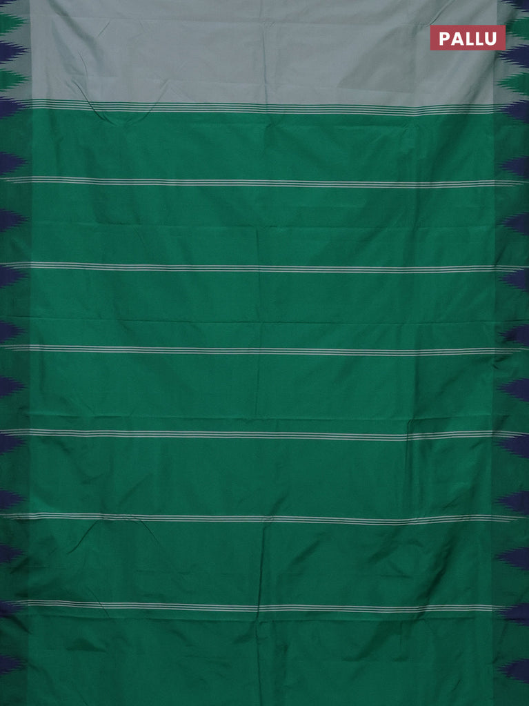 Arani semi silk saree greyish green and green with plain body and temple design border
