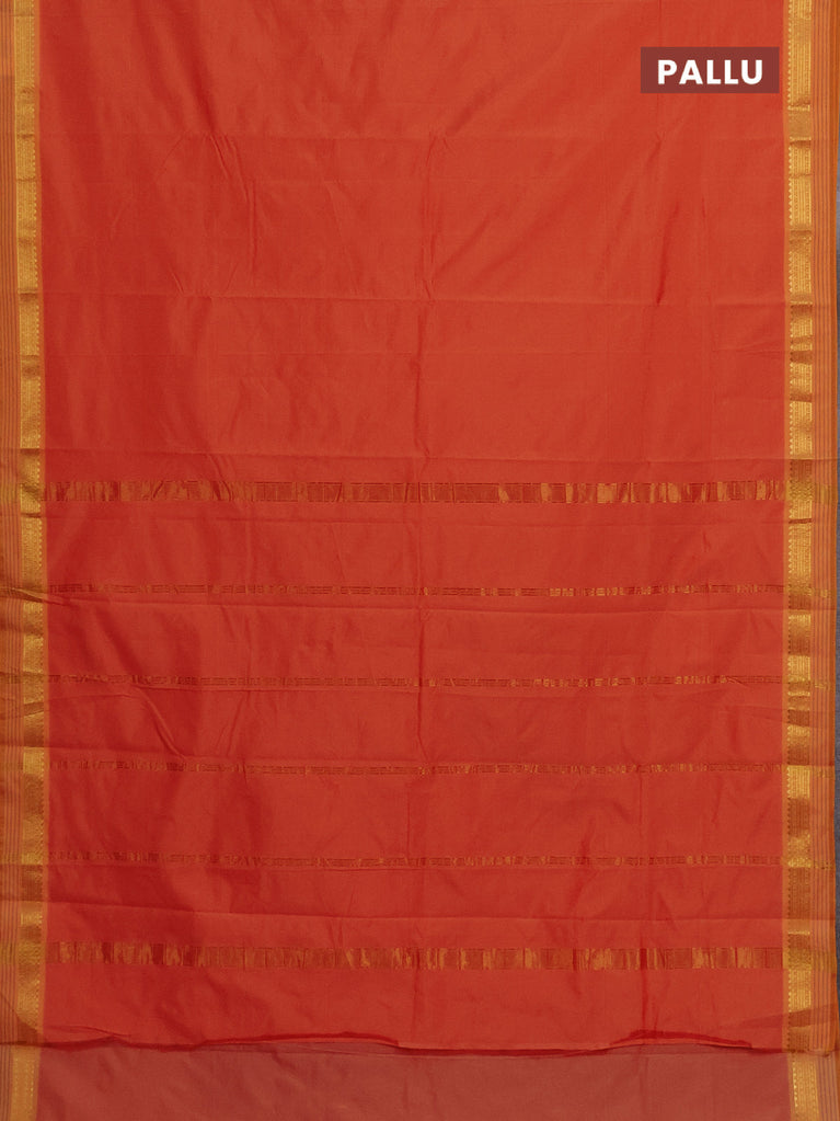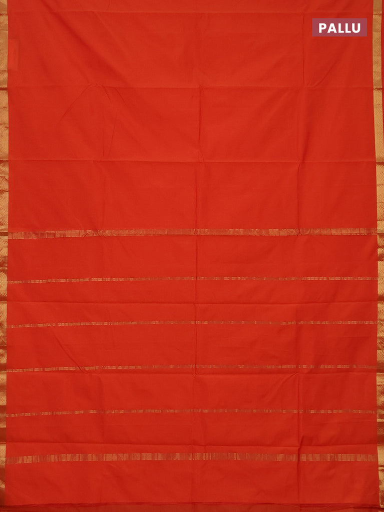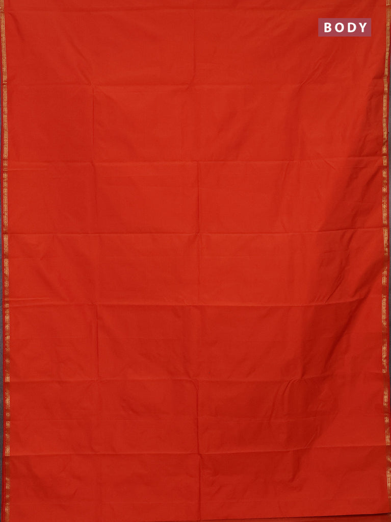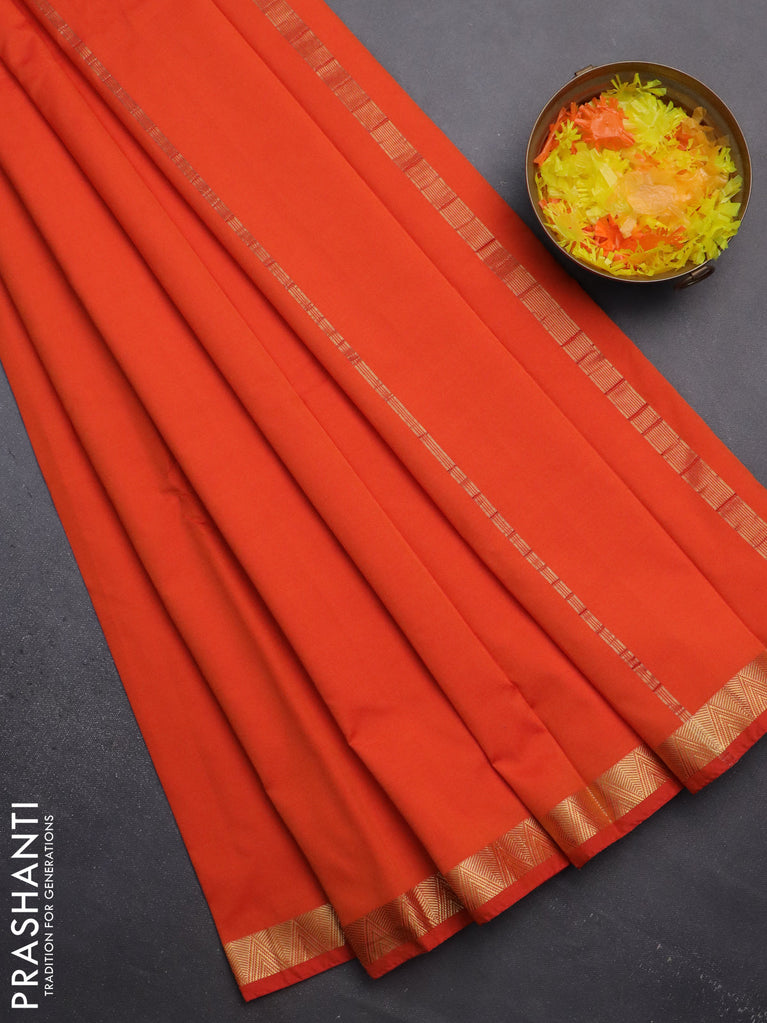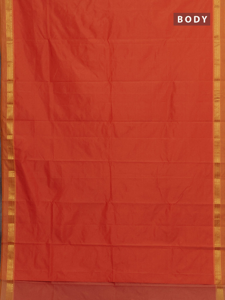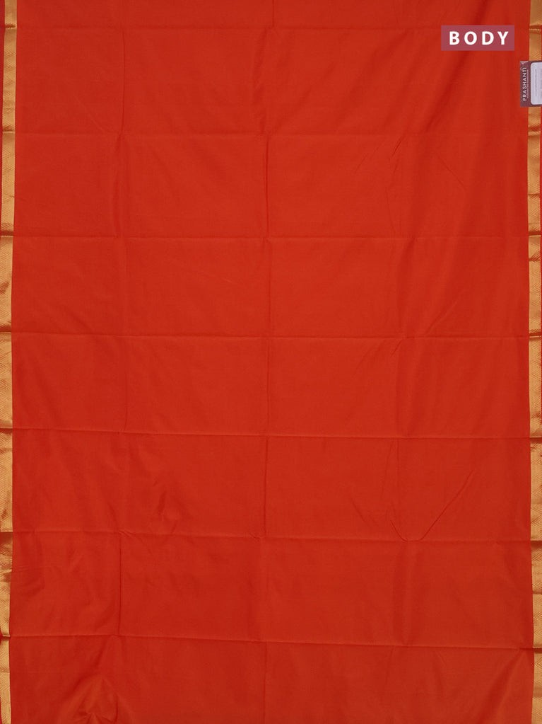 Arani semi silk saree orange and dual shade of yellow with plain body and zari woven simple border