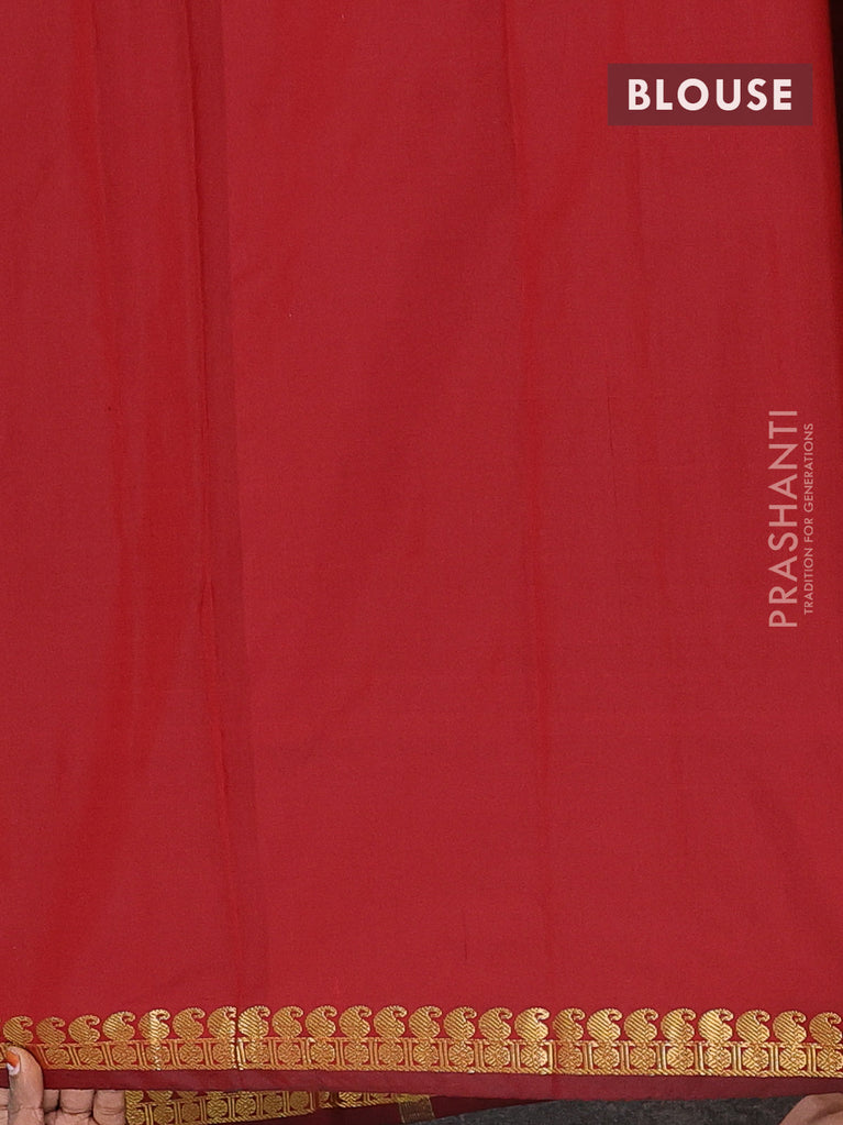 Arani semi silk saree maroon shade with plain body and small zari woven border