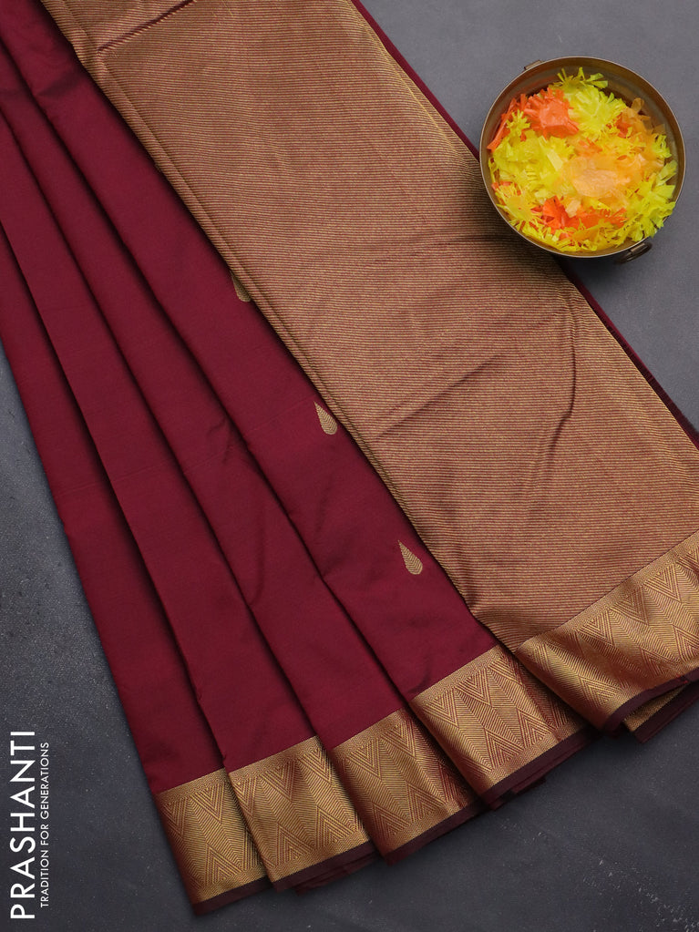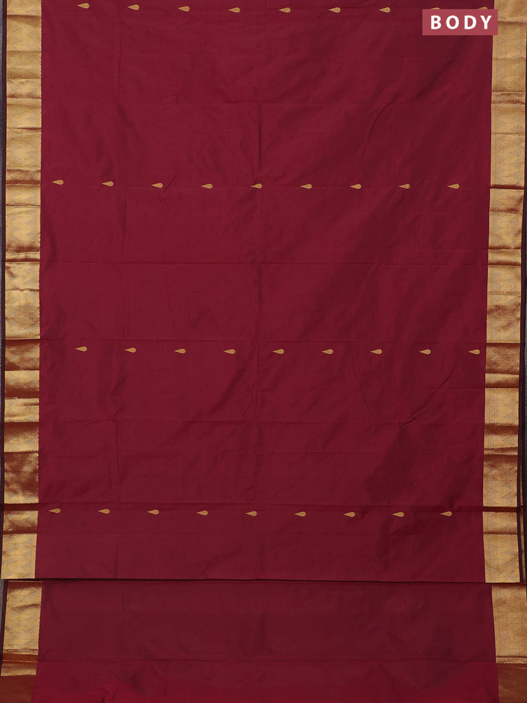 Arani semi silk saree maroon with rudhraksha & paisley zari woven buttas and zari woven border