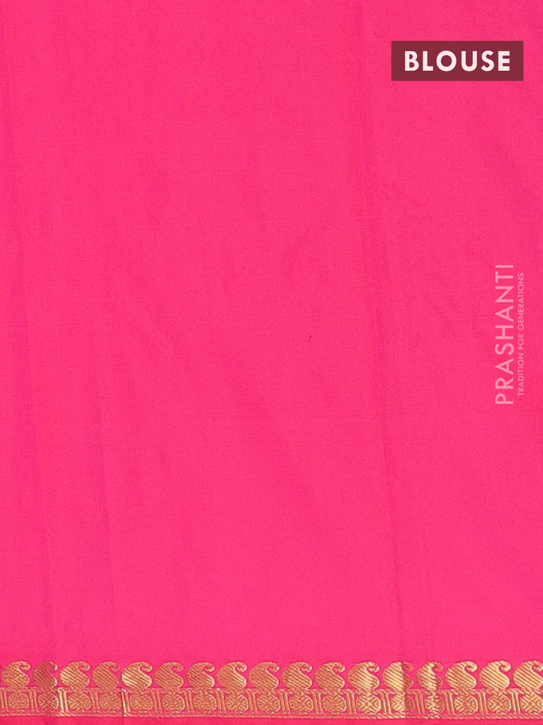 Arani semi silk saree pink with plain body and zari woven border