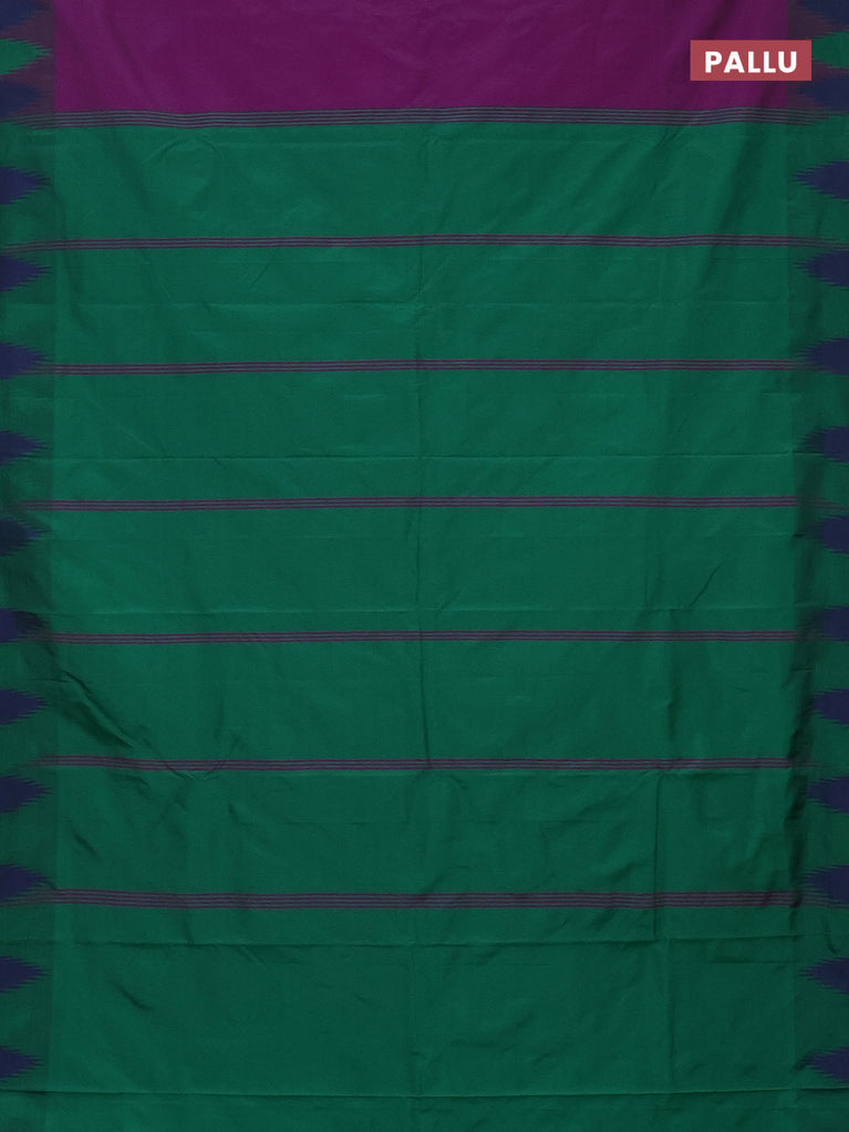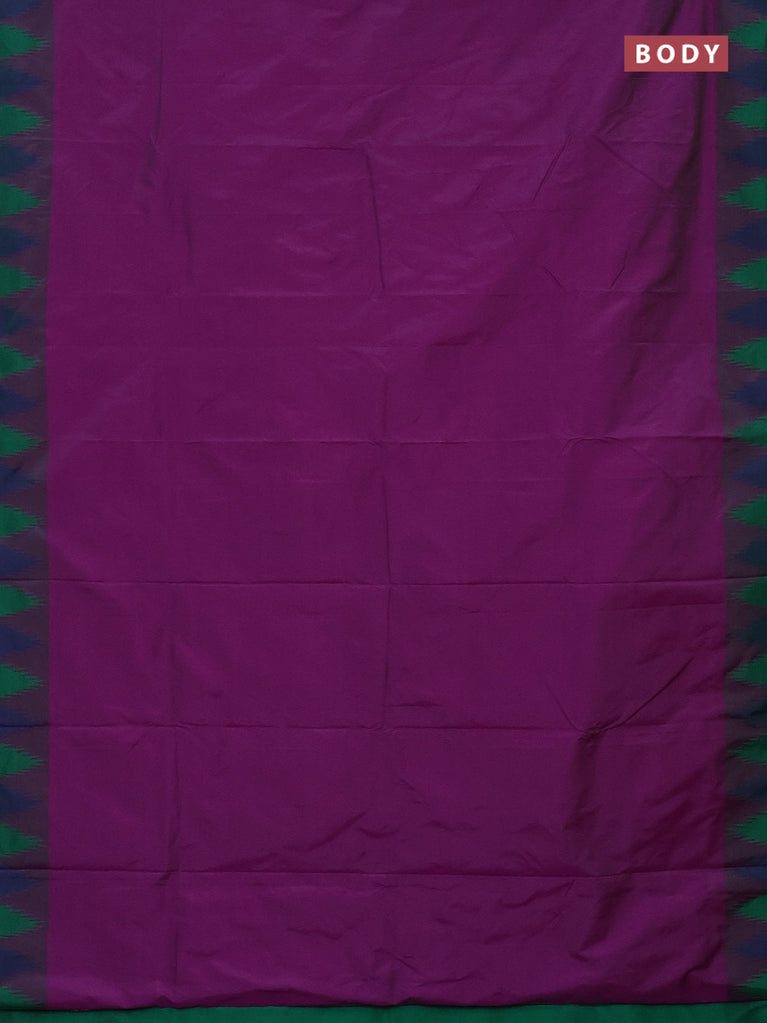 Arani semi silk saree purple and dual shade of green with plain body and temple design border