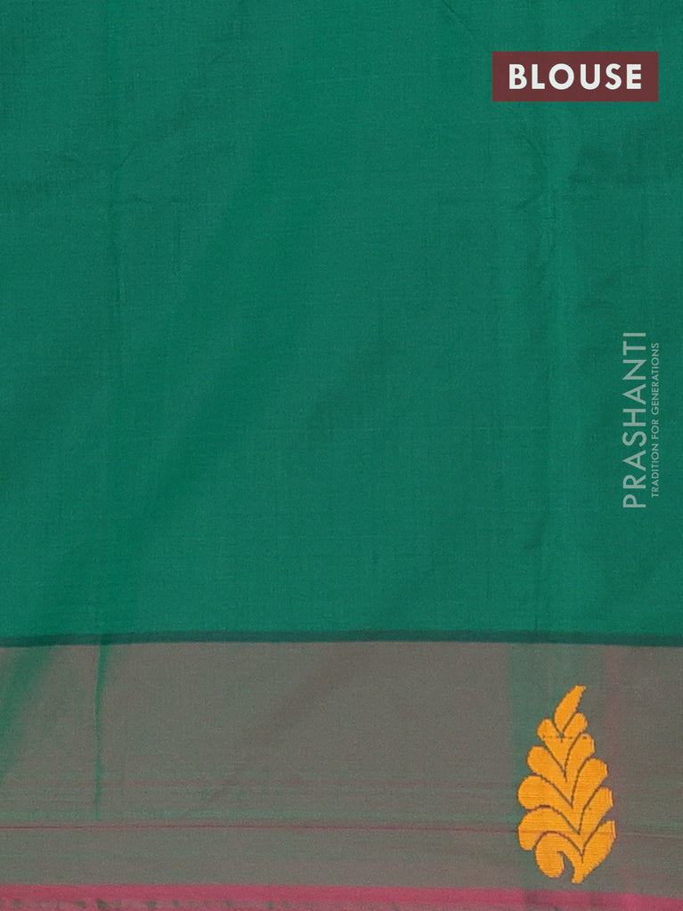 Arani semi silk saree purple and dual shade of green with zari woven buttas and paisley zari woven butta border