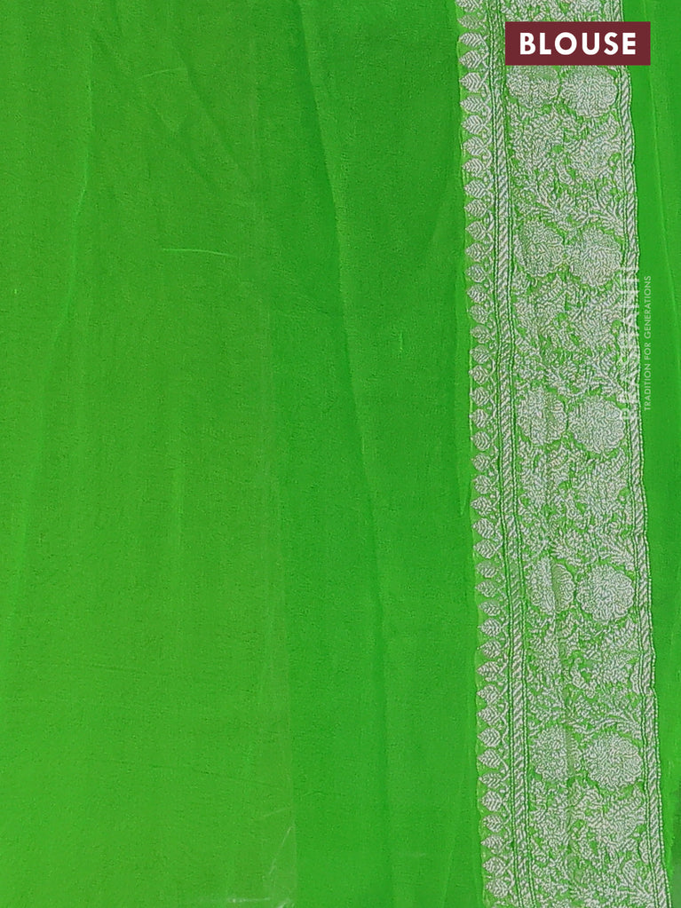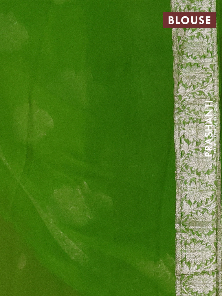 Banarasi chiffon silk saree green with silver zari woven buttas and silver zari woven border