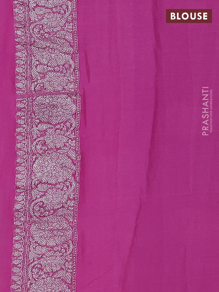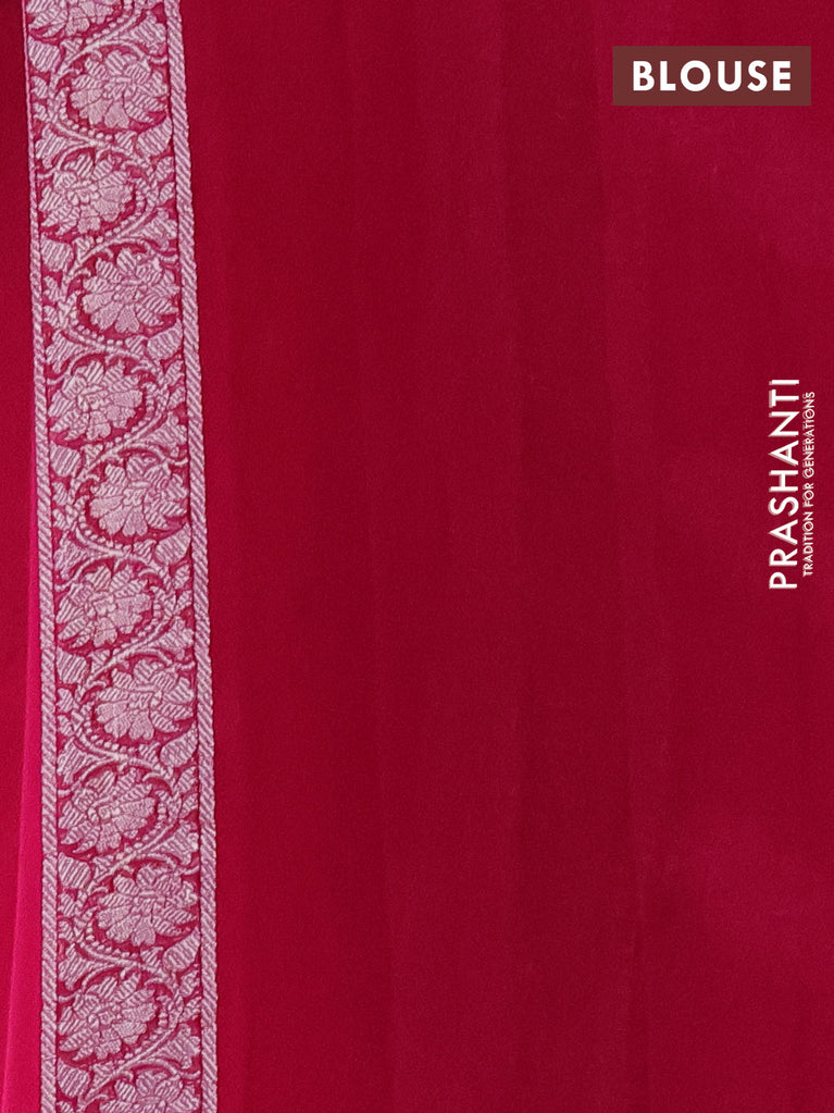 Banarasi chiffon silk saree dark pink with silver zari woven buttas and silver zari woven border
