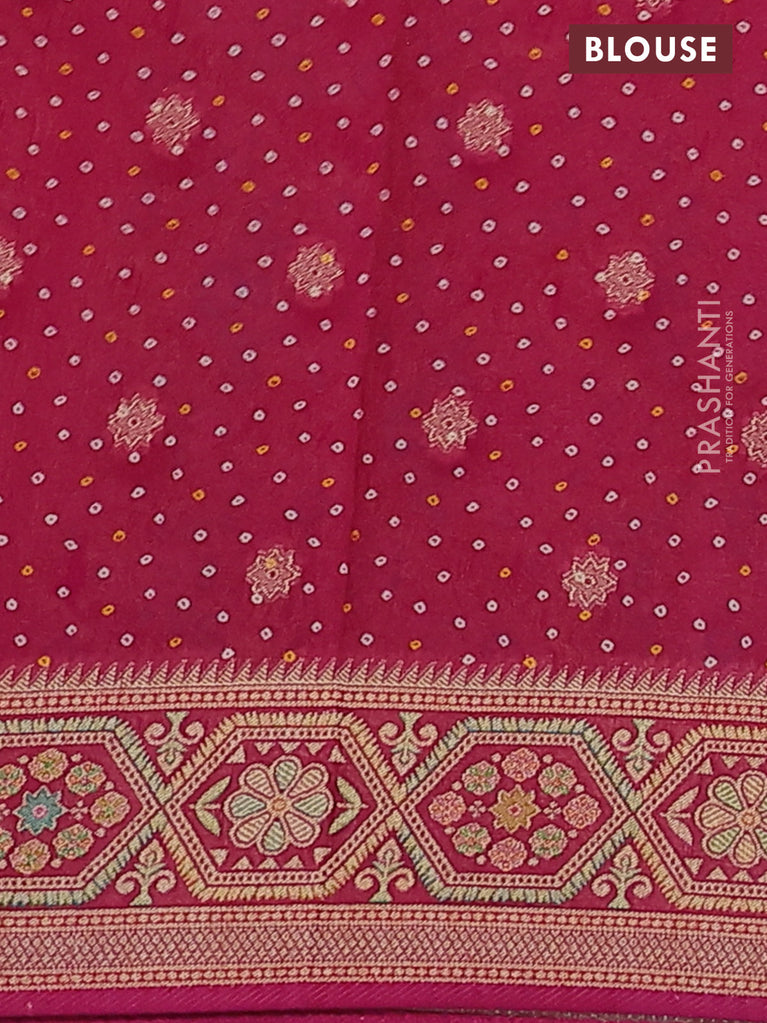 Banarasi georgette saree reddish pink with bandhani prints & zari weaves and woven border