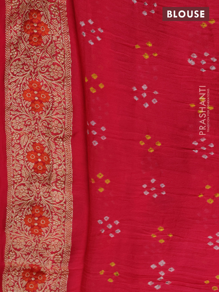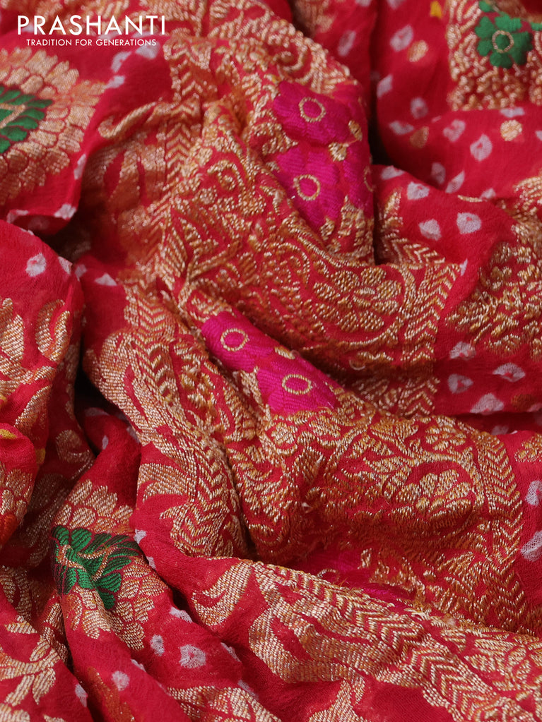 Banarasi georgette saree red with bandhani prints & mina weaves and woven border