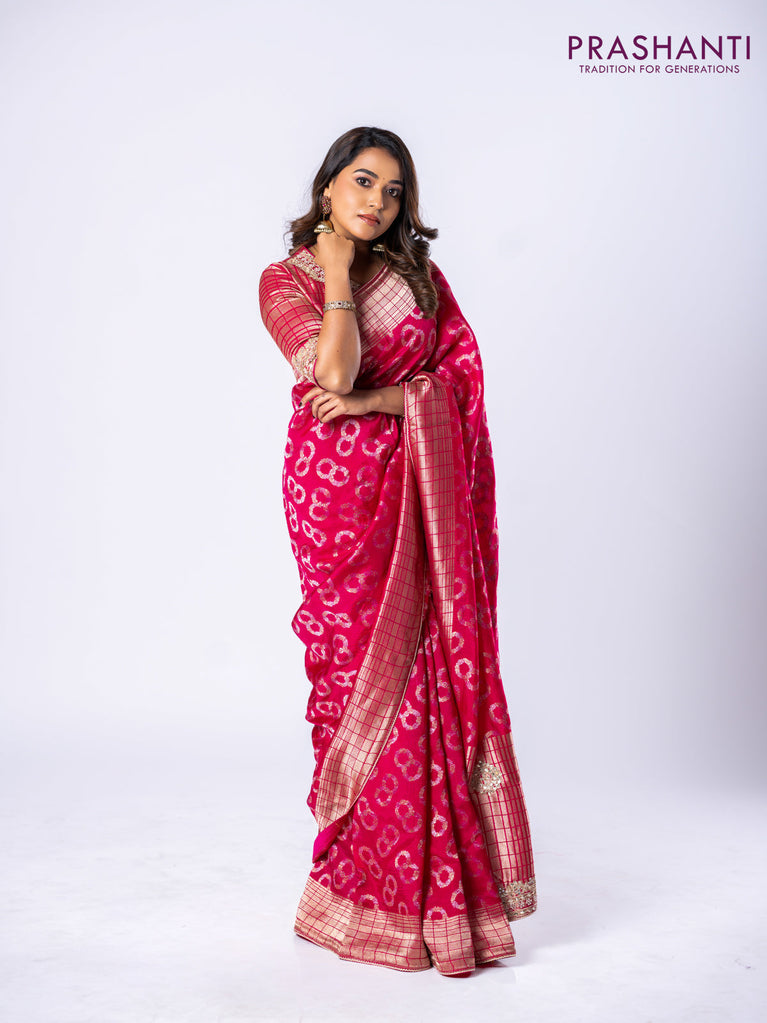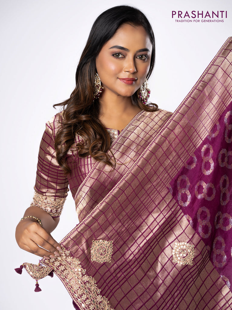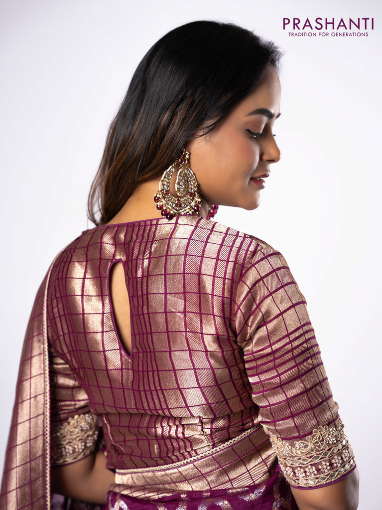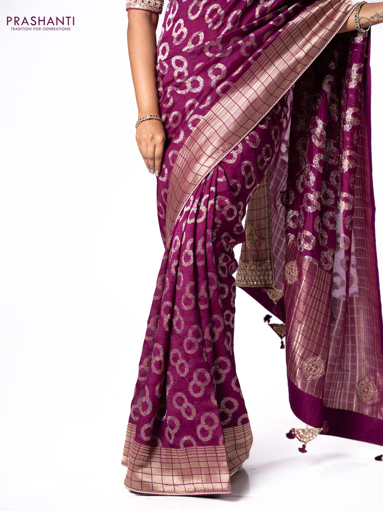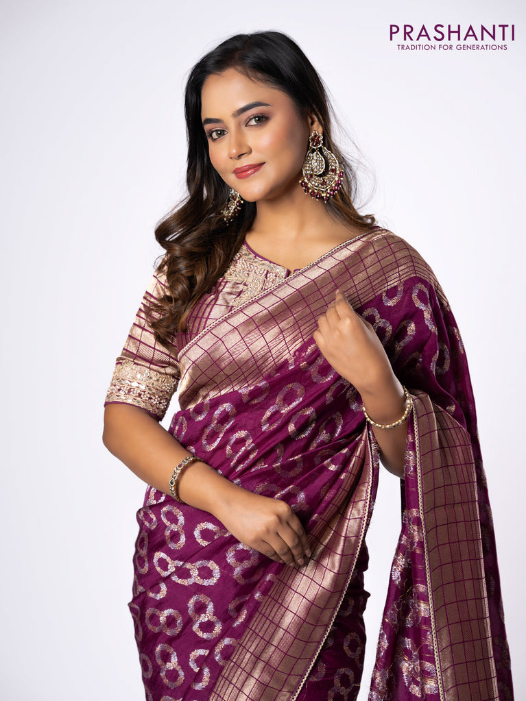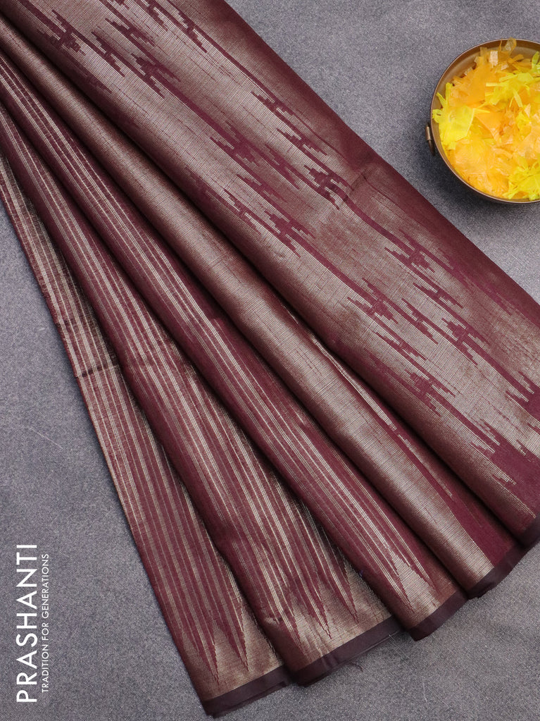 Banarasi matka tissue saree wine shade with allover zari woven brocade weaves in borderless style