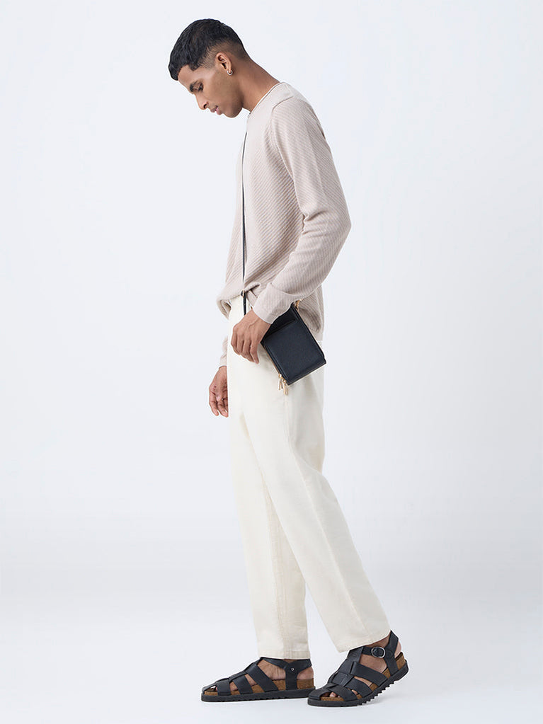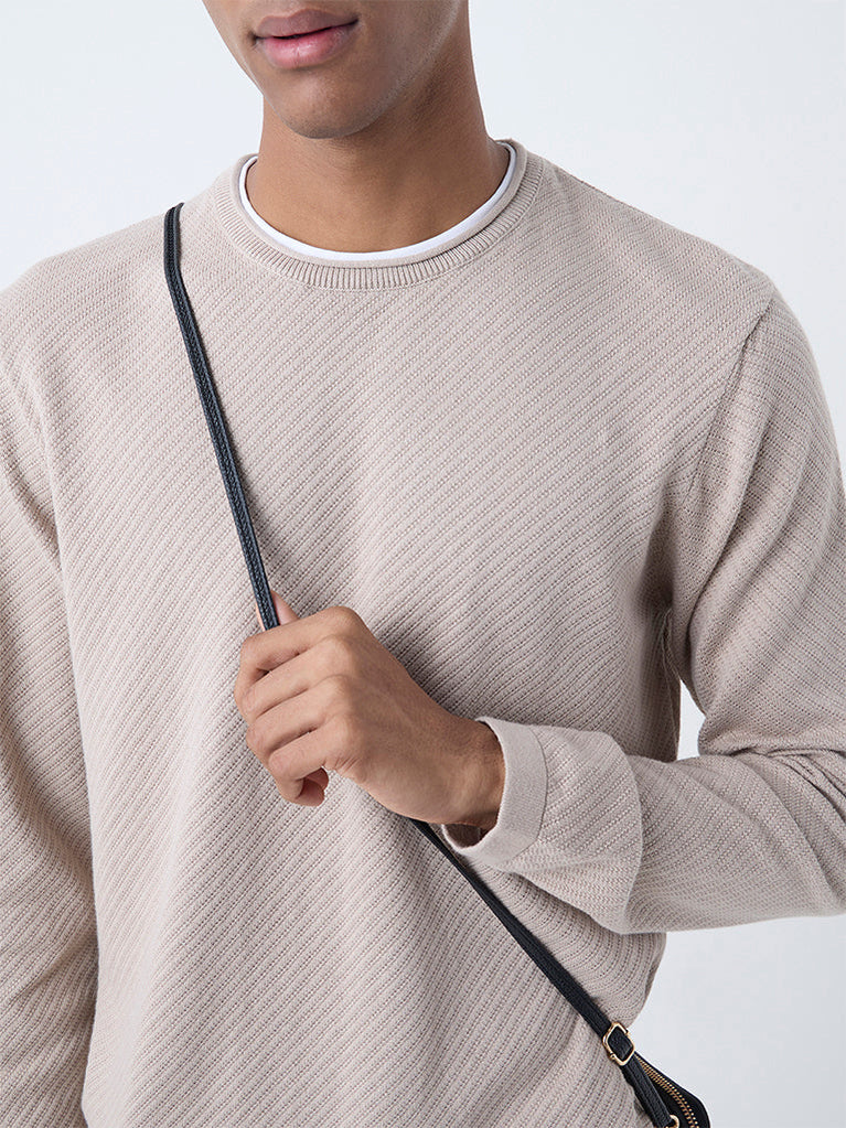 Ascot Beige Ribbed-Textured Relaxed-Fit Sweater