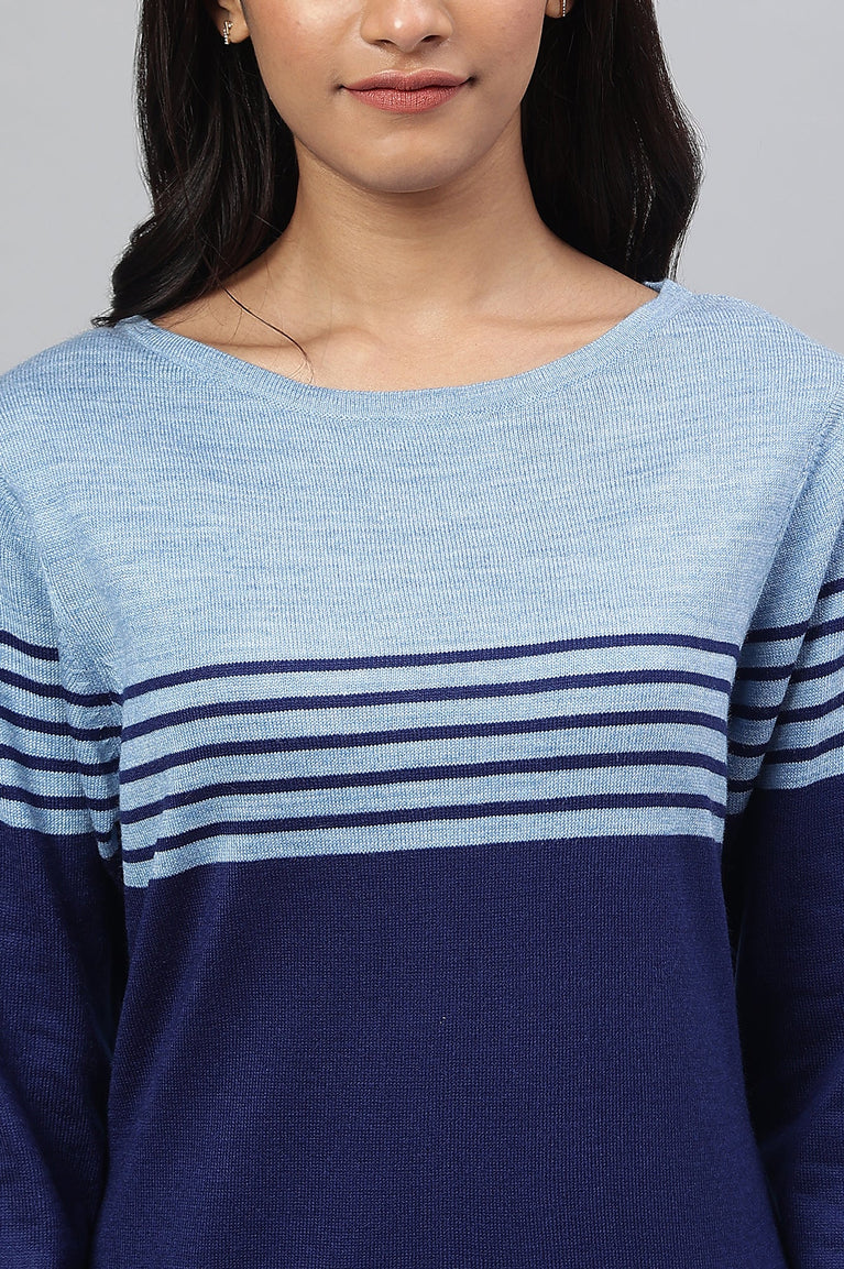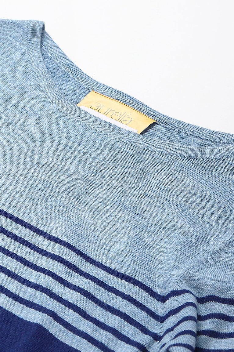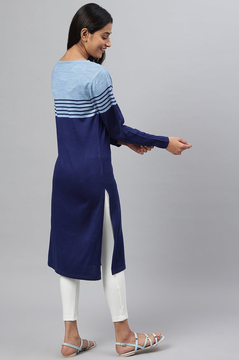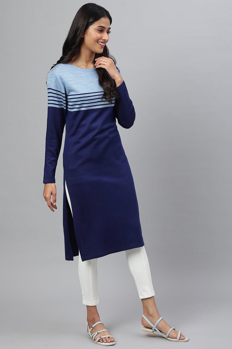 Blue Colour Blocked Plus Size Winter kurta