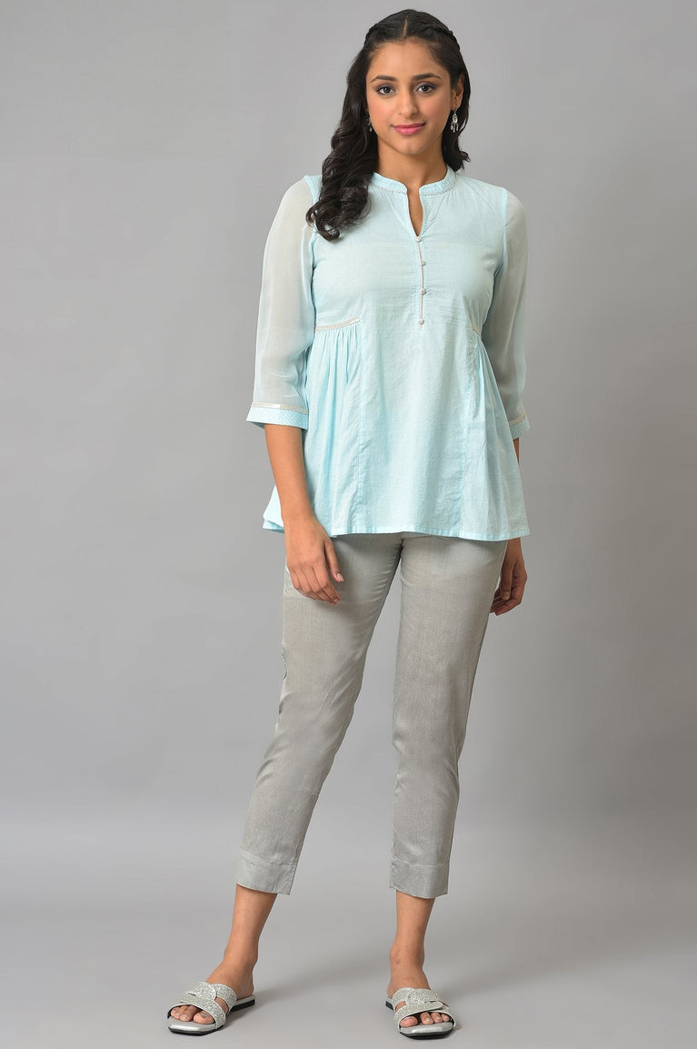 New To Our Collection, This Vibrant Ice Blue Coloured Cotton Top With Elegant Style Details Is A Must Have This Season.