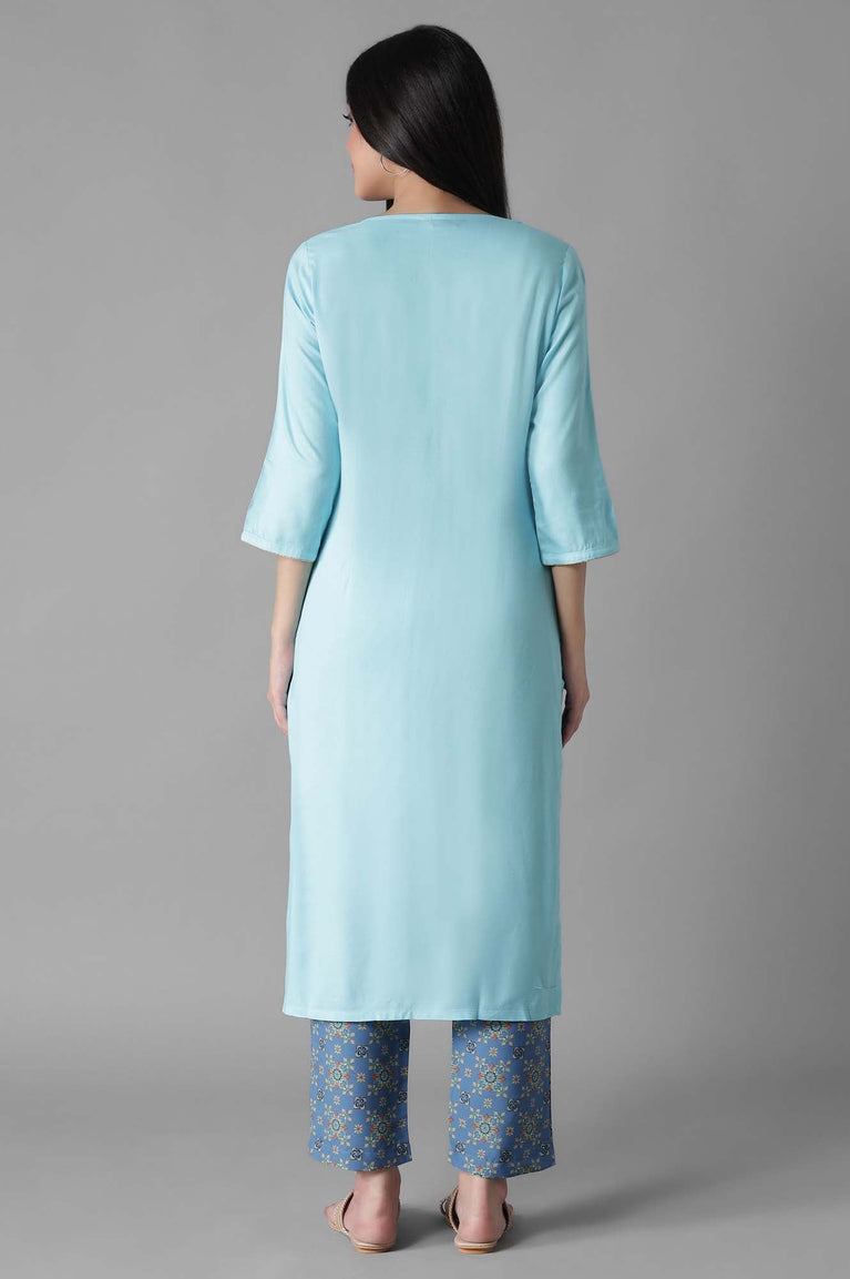 Blue Embroidered Solid Straight kurta