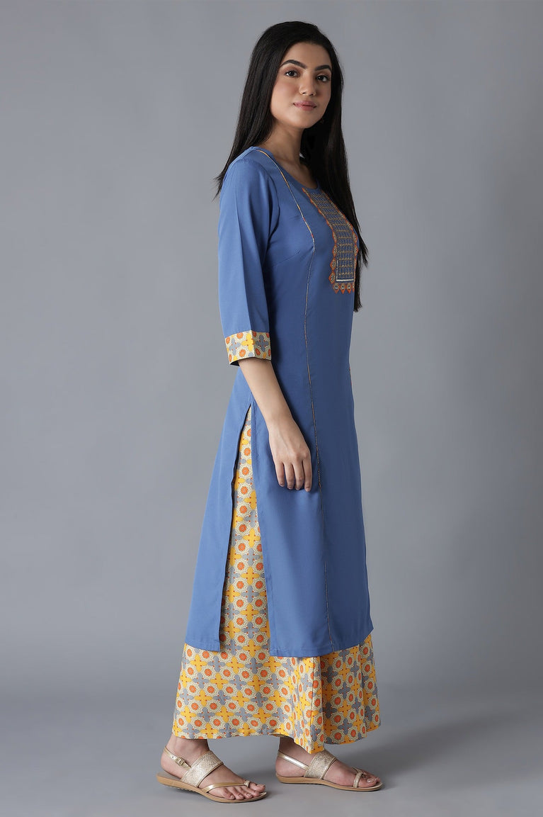 Blue Embroidered Round Neck Ethnic kurta