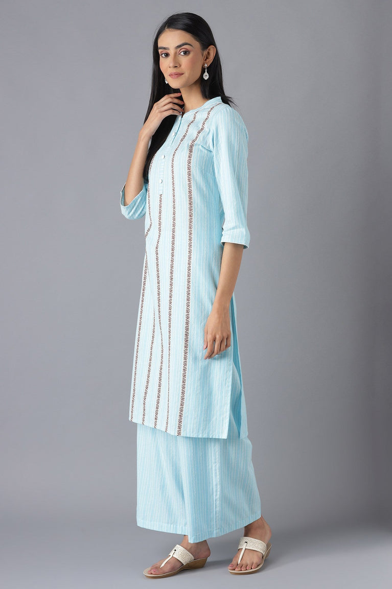 Blue Embroidered Straight kurta Palazzos Set