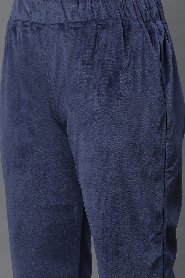 Blue Embroidered Velvet Winter Kurta and Pants Set