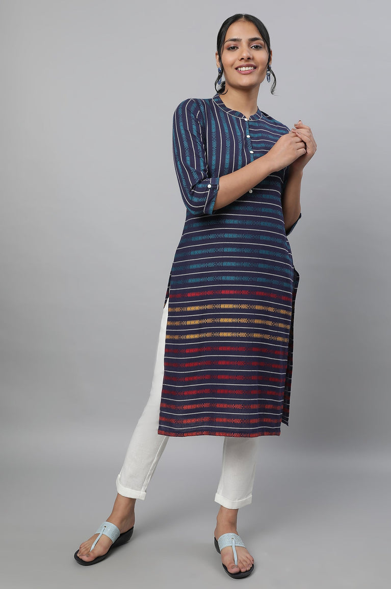 Blue Everyday Printed Straight Kurta