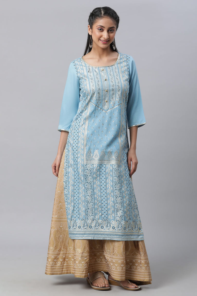 Blue Flared Ethnic kurta in Round Neck