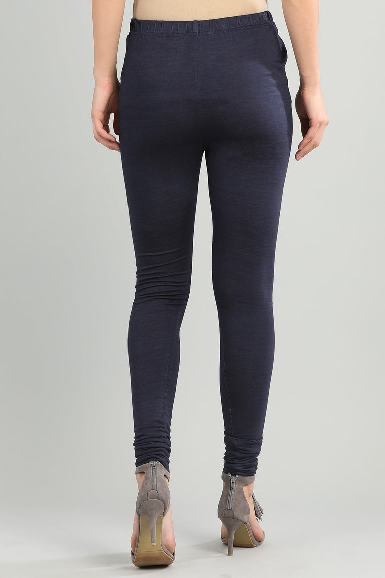 Blue solid churidar with elasticated waistband. It is made up of cotton jersey.