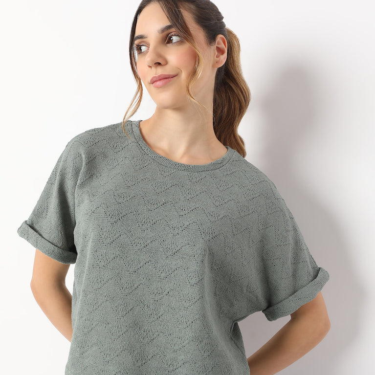 Boxy Fit Round Neck Full Sleeve With V-Neck Sweat Tee