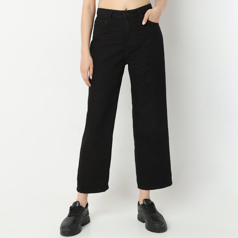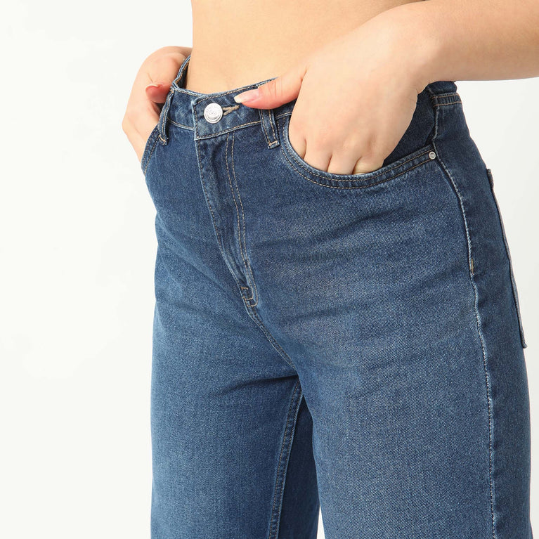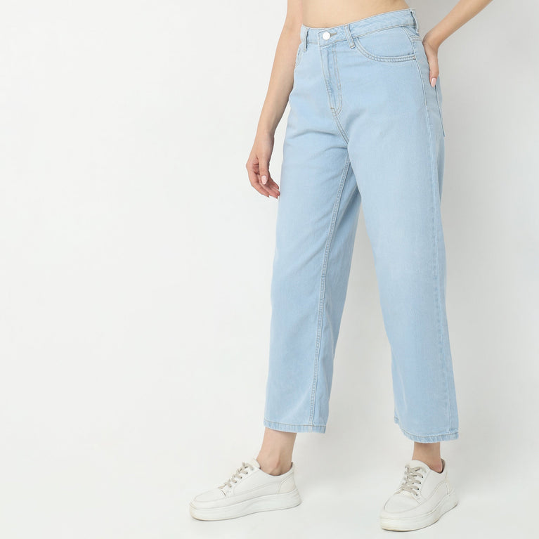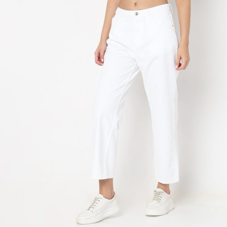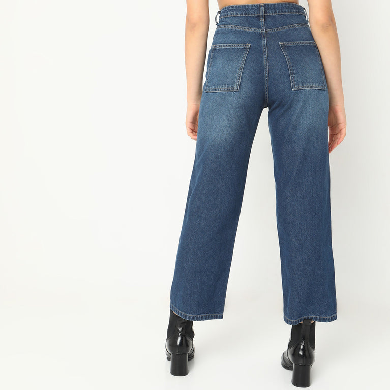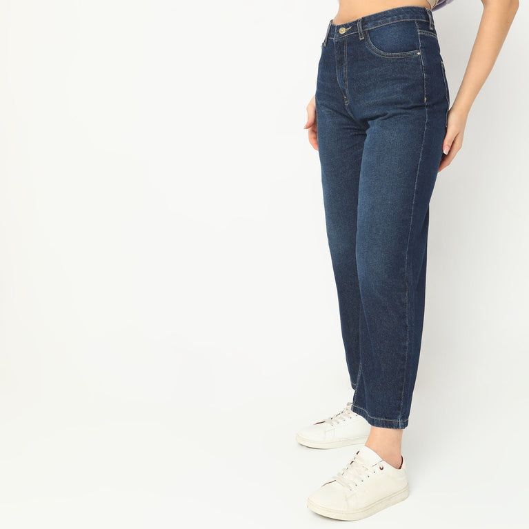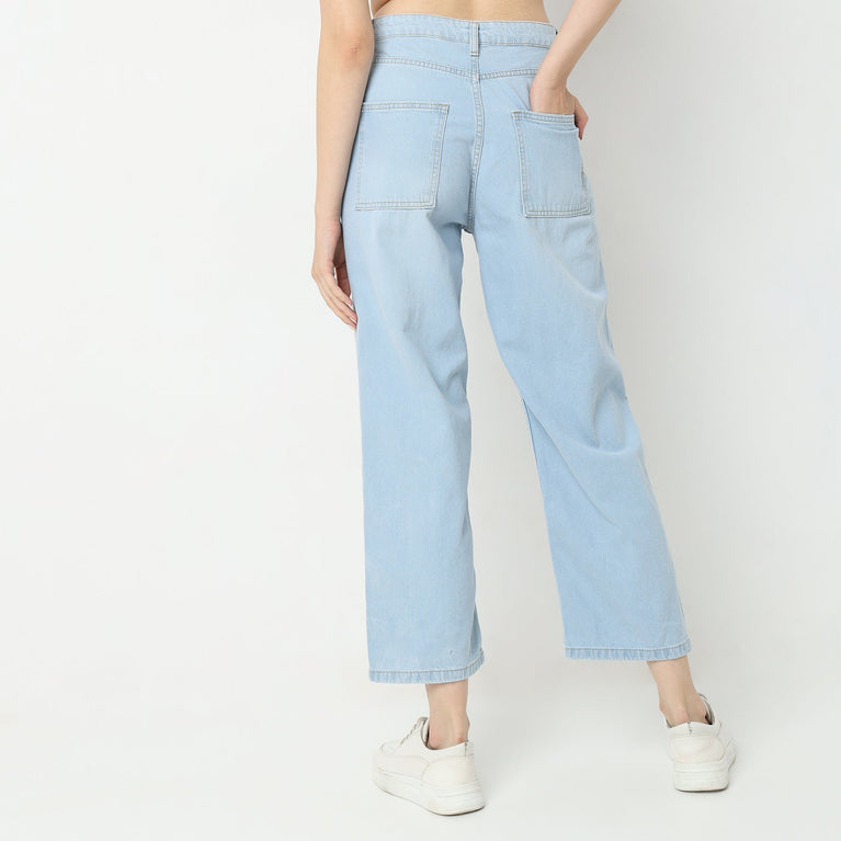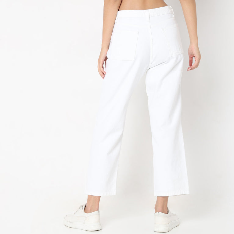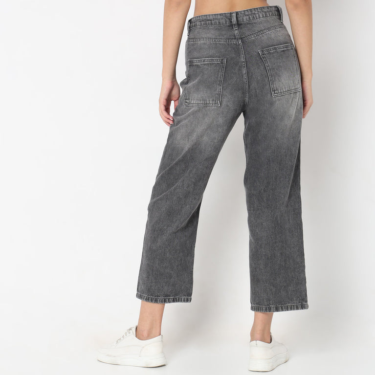 These straight fit jeans has full length, high rise waist. Made from cotton, it is soft and comfortable to wear.
