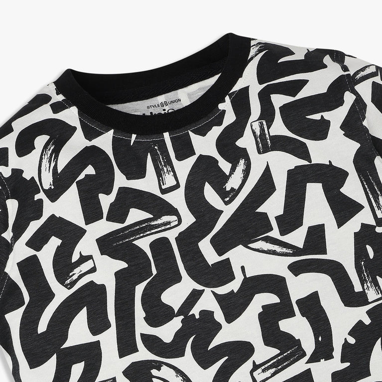 Experience the perfect blend of comfort and style with our Boys Cotton Pop Sweat Tee. Crafted from 100% cotton, this tee ensures breathability and softness, making it ideal for all-day wear. The vibrant all-over print adds a playful touch, perfect for boys who love to express their personality through fashion.