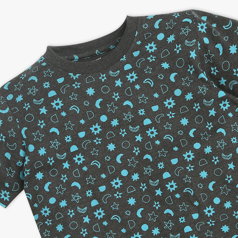Boys Crew Neck T-Shirt And Shorts All Over Printed Sleepwear Set