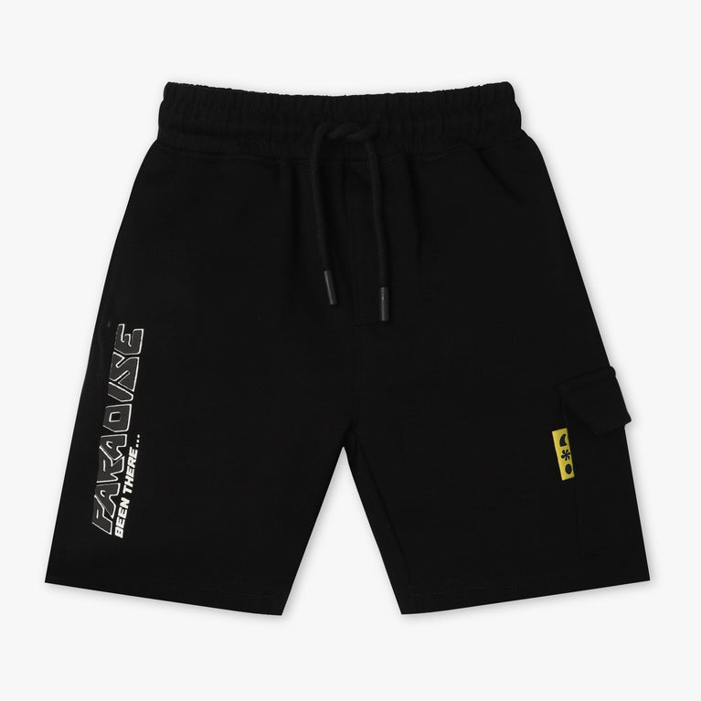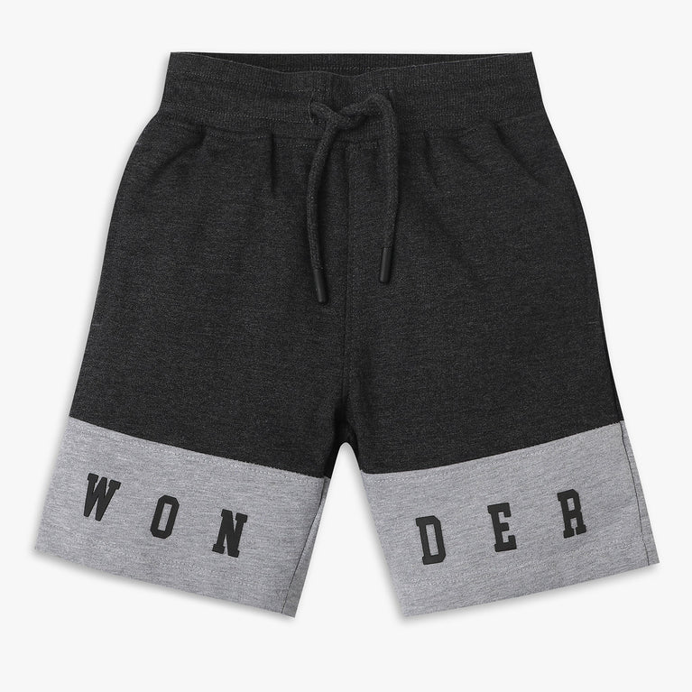 These cut and sew pattern regular fit shorts has mid rise waist. Made from cotton cotton, your kid's feel comfortable wearing the product.