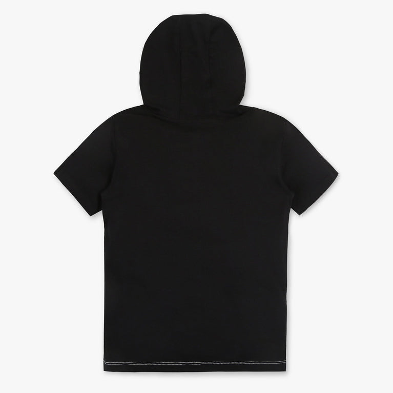 Experience the perfect blend of comfort and style with our Boys Pop Sweat Tee. Crafted from a soft cotton polyester blend, this tee offers a cozy feel while ensuring durability and easy maintenance. The hoodie design adds a trendy touch, making it a versatile piece for any casual outing.