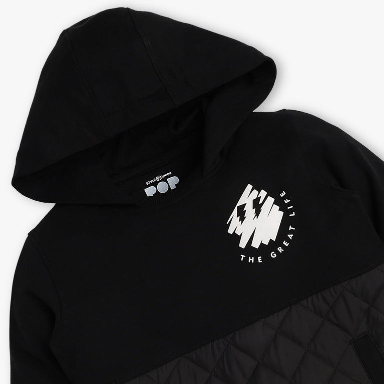 Discover the perfect blend of comfort and style with our Boys Pop Sweat Tee. Crafted from a soft cotton-polyester blend, this hoodie ensures warmth and coziness for your little one, making it an ideal choice for any casual outing or playdate.