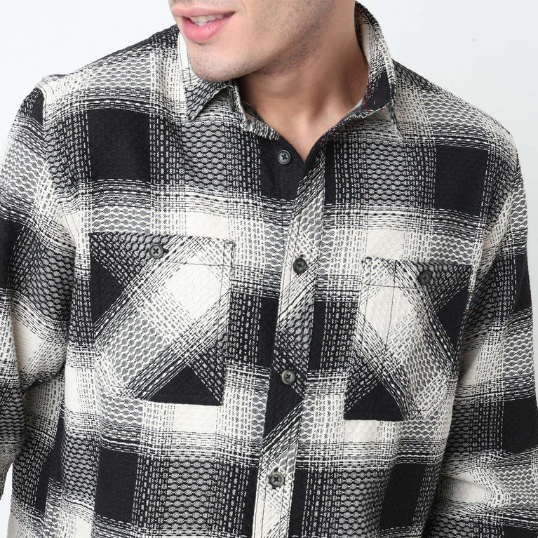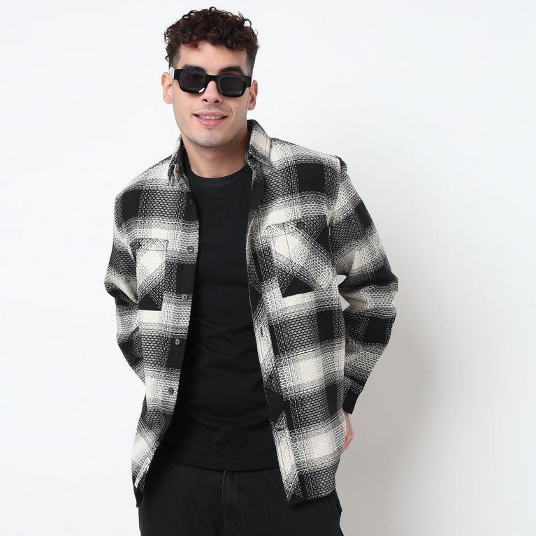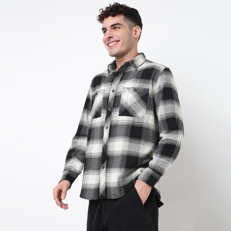 Checkered Lapel Collar Full Sleeve Crop T-Shirt